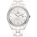 Женские механические швейцарские часы с автоподзаводом Rado Hyperchrome R32483702. Сапфировое стеклоСапфировое стеклоПрочный и надёжный материал из кристалла сапфира синтетического происхождения, характеризующийся особой твёрдостью и устойчивостью к царапинам и повреждениям. устойчивое к мелким механическим повреждениям. Корпус часов изготовлен из высокотехнологичной керамикиВысокотехнологичная керамикаИнновационный запатентованный Rado материал с гладкой или матовой поверхностью. Керамика за счёт кристаллической структуры обладает повышенной устойчивостью от возникновения царапин. Материал способен принимать температуру тела человека, обеспечивая невероятный комфорт при ношении.. БезельБезельВнешний ободок, закрепляющий стекло. В спортивных часах так называется поворотное кольцо с делениями на циферблате, выполняет роль таймера – замеряет отрезки времени на шкале. Неподвижный безель – элемент декора. Однонаправленно вращающийся безель на дайверских часах позволяет фиксировать моменты погружения и выныривания на поверхность. и циферблат украшены бриллиантами. Окошко даты находится в положении 3 часа. Класс водозащиты: 50 метров, позволит защитить корпус от случайных брызг или капель дождя. Браслет из высокотехнологичной керамикиВысокотехнологичная керамикаИнновационный запатентованный Rado материал с гладкой или матовой поверхностью. Керамика за счёт кристаллической структуры обладает повышенной устойчивостью от возникновения царапин. Материал способен принимать температуру тела человека, обеспечивая невероятный комфорт при ношении. на застёжке «бабочка» с кнопкамиЗастёжка "бабочка"Такой вид застёжки дополняется предохранителями, помогающими избежать случайного раскрытия браслета. Обладают изящным исполнением. .
