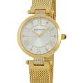 Fashion-модель в золотистом цвете украшена цирконами. Высокую точность хода обеспечивает кварцевый калибр. Минеральное стекло с закаленной поверхностью. Водостойкость до 50 метров. Корпус и браслет плетения Mesh из нержавеющей стали 316L с PVD-покрытиемPVDУльтратонкое покрытие наносится в технике вакуумного напыления, сочетает в себе нитрид титана особой прочности со слоем золота или оксида хрома. Несёт в себе декоративную или защитную функцию..
