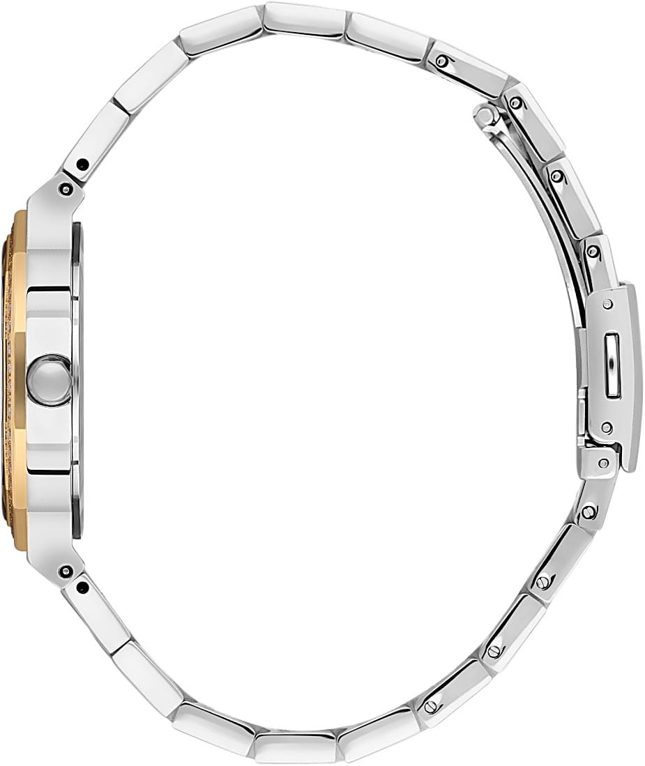 Женские кварцевые часы Santa Barbara Polo & Racquet Club Unique SB.1.10552-3 — это стильный аксессуар, подчеркивающий индивидуальность. Изысканный корпус диаметром 35 мм выполнен из нержавеющей стали 316L с 12-гранным безелемБезельВнешний ободок, закрепляющий стекло. В спортивных часах так называется поворотное кольцо с делениями на циферблате, выполняет роль таймера – замеряет отрезки времени на шкале. Неподвижный безель – элемент декора. Однонаправленно вращающийся безель на дайверских часах позволяет фиксировать моменты погружения и выныривания на поверхность. с IP-покрытиемIP-покрытиеМетод ионного напыления. Демонстрирует повышенную устойчивость к истиранию, окислению и химическим веществам. Под воздействием высокого давления и температуры около 1500°C молекулы металла надёжно соединяются с частицами корпуса часов., украшенным кристаллами. Изящный циферблат дополнен накладными метками в виде точек, украшенных кристаллами, а также фирменным логотипом. Стрелки скругленные с люминесцентным покрытиемЛюминесцентное покрытиеПозволяет считывать показания времени в темноте. Производители наносят на стрелки, часовые индексы, безель или поверхность циферблата светонакопительный состав, дающий холодное свечение., обеспечивающим хорошую читаемость в темноте. Циферблат защищён минеральным стекломМинеральное стеклоМинеральное стекло представляет собой искусственно выращенный минерал кварца. Такое стекло отличается особой устойчивостью к повреждениям и царапинам. Уступает по некоторым качествам сапфировому стеклу.. Часы оснащены надежным стальным браслетом с раскладной застёжкойРаскладная застёжкаТакой тип застёжки используется только на браслетах из металла. Она никогда не раскрывается полностью, происходит разделение на 2 и более частей. Раскладывающая застёжка снизит вероятность потери часов к минимуму. с частичным IP-покрытиемIP-покрытиеМетод ионного напыления. Демонстрирует повышенную устойчивость к истиранию, окислению и химическим веществам. Под воздействием высокого давления и температуры около 1500°C молекулы металла надёжно соединяются с частицами корпуса часов.. Водонепроницаемость 50 м позволяет использовать часы в повседневных условиях. Идеальный выбор для тех, кто ценит элегантный дизайн и качество.