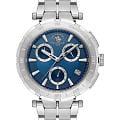 Циферблат подчёркивает индивидуальность модели и гармонично сочетается с серебристыми метками и стрелками. Функционал включает хронографХронографФункция позволяет измерять отрезки времени с особой точностью: часы, минуты, секунды. Верным признаком хронографа является наличие на циферблате 3 дополнительных окошек-счётчиков. с тремя субциферблатами, секундомерСекундомерСекундоме́р — прибор, способный измерять интервалы времени с точностью до долей секунды. и окошко даты, расположенное в области «4 часов». На фиксированном безелеБезельВнешний ободок, закрепляющий стекло. В спортивных часах так называется поворотное кольцо с делениями на циферблате, выполняет роль таймера – замеряет отрезки времени на шкале. Неподвижный безель – элемент декора. Однонаправленно вращающийся безель на дайверских часах позволяет фиксировать моменты погружения и выныривания на поверхность. размещена тахиметрическая шкала ТахиметрТахиметрРазмеченная шкала, располагается на ободке или безеле часов. Тахиметр позволяет рассчитать скорость на определённом участке пути, расстояние измеряется в километрах или милях., позволяющая измерять скорость.