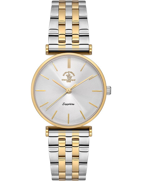 Santa Barbara Polo & Racquet Club — женские наручные часы в элегантном минималистичном стиле, подчёркивающем статус и изысканность владельца. Корпус изготовлен из нержавеющей стали с PVD-покрытиемPVDУльтратонкое покрытие наносится в технике вакуумного напыления, сочетает в себе нитрид титана особой прочности со слоем золота или оксида хрома. Несёт в себе декоративную или защитную функцию., которая придаёт часам благородный оттенок и дополнительную стойкость к износу.