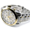 Брендовый хронографХронографФункция позволяет измерять отрезки времени с особой точностью: часы, минуты, секунды. Верным признаком хронографа является наличие на циферблате 3 дополнительных окошек-счётчиков. с контрастными элементами дизайна – достойный подарок для солидного мужчины. Часы сделаны из нержавеющей стали 316L, устойчивой к деформации и ударам. PVD-покрытиеPVDУльтратонкое покрытие наносится в технике вакуумного напыления, сочетает в себе нитрид титана особой прочности со слоем золота или оксида хрома. Несёт в себе декоративную или защитную функцию. придаёт золотистый оттенок и защищает от царапин. Внутри прочного корпуса заключён японский кварцевый механизм Seiko 7T86, отличающийся высокой точностью хода. Практичная модель имеет вечный календарьВечный календарьКлассическое часовое усложнение, представляющее собой календарь, рассчитанный на несколько лет вперёд (стандартно – до 2099 года). Определяет текущую дату, день недели, месяц., будильник, секундомер. Сапфировое стекло характеризуется устойчивостью к царапинам. Задняя крышка завинчивается, усиливая водостойкость конструкции до 10 бар. Диаметр корпуса: 41,5 мм.