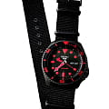 Водозащита 100 метров (10 бар) позволяет использовать часы для плавания и других водных видов спорта. Чёрный нейлоновый ремешок с раскладной застёжкойРаскладная застёжкаТакой тип застёжки используется только на браслетах из металла. Она никогда не раскрывается полностью, происходит разделение на 2 и более частей. Раскладывающая застёжка снизит вероятность потери часов к минимуму. обеспечивает комфортное ношение и надёжную фиксацию на запястье.