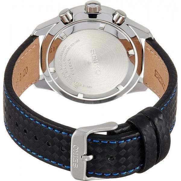 Успешные люди, желающие идти в ногу со временем, выбирают инновационные и надежные часы марки Seiko. Кварцевый механизм, калибр Seiko 8T67. Корпус круглой формы выполнен из высокопрочной стали с антикоррозийными свойствами. Черный фон циферблата и стальные элементы дизайна. Часы снабжены минеральным стеклом, устойчивым к царапинам. Водонепроницаемость до 100 метров. Часы прочно удерживаются на руке ремешком из натуральной кожи синего цвета. Часы оснащены хронографом и тахиметром.
