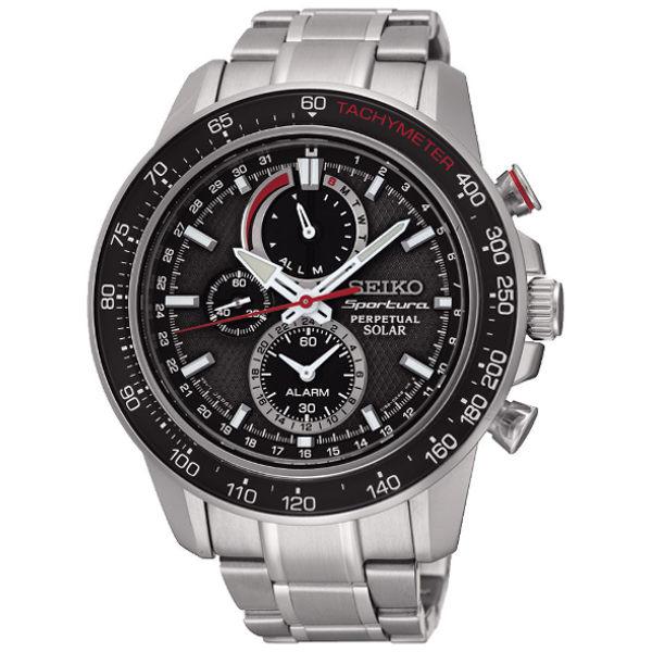 Эффектные мужские часы в современным дизайном. Механизм работает от солнечной энергии, калибр Seiko V198. Корпус круглой формы, с черным аналоговый циферблатом. Браслет и корпус выполнены из нержавеющей стали с частичным PVD покрытием. Сапфировое стекло устойчиво к царапинам. Оснащены функциями хронографа, вечного календаря и будильника. Водонепроницаемость 100 м.