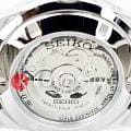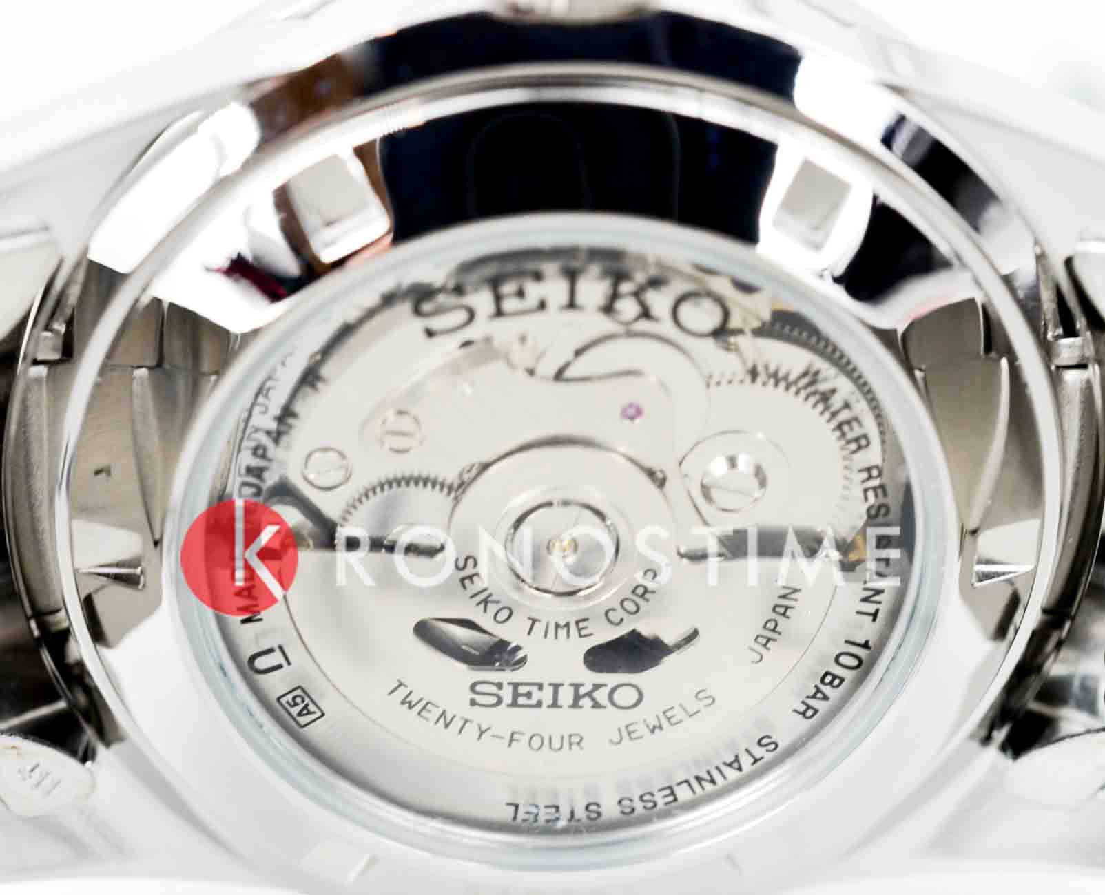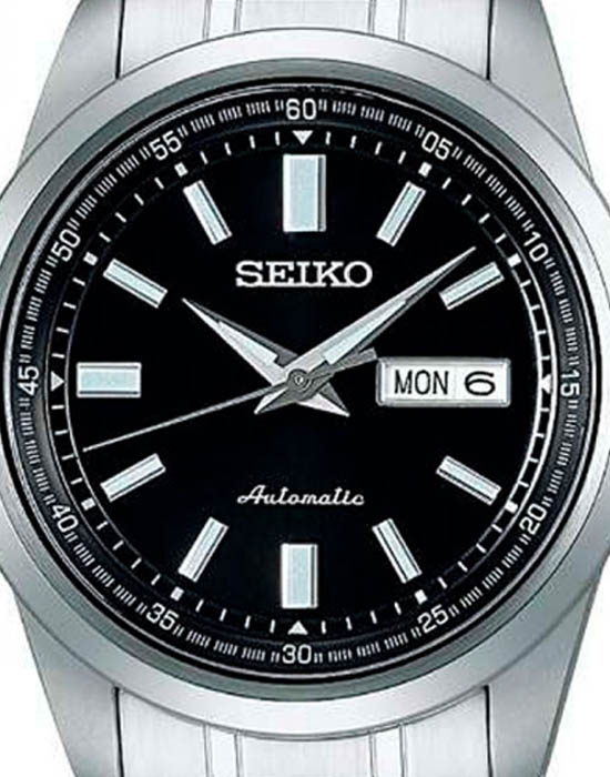 Модель Seiko SARV003 — это классические автоматические часы с глубоким чёрным циферблатом и строгим стилем исполнения. Корпус диаметром 42 мм изготовлен из нержавеющей стали с комбинированной полировкой, задняя крышка прозрачная, завинчивающаяся. Водозащита до 100 метров делает модель подходящей для повседневного ношения. Фиксированный стальной безельБезельВнешний ободок, закрепляющий стекло. В спортивных часах так называется поворотное кольцо с делениями на циферблате, выполняет роль таймера – замеряет отрезки времени на шкале. Неподвижный безель – элемент декора. Однонаправленно вращающийся безель на дайверских часах позволяет фиксировать моменты погружения и выныривания на поверхность. подчеркивает сдержанный внешний вид. Чёрный циферблат оформлен серебристыми стрелками и метками, которые покрыты люминесцентным покрытиемЛюминесцентное покрытиеПозволяет считывать показания времени в темноте. Производители наносят на стрелки, часовые индексы, безель или поверхность циферблата светонакопительный состав, дающий холодное свечение. LumiBrite для удобной читаемости в тёмное время суток. На отметке 3 часа — двойное окошко даты и дня недели (на английском и японском языках). Циферблат защищён прочным минеральным стекломМинеральное стеклоМинеральное стекло представляет собой искусственно выращенный минерал кварца. Такое стекло отличается особой устойчивостью к повреждениям и царапинам. Уступает по некоторым качествам сапфировому стеклу. Hardlex, устойчивым к царапинам. Внутри установлен автоматический механизм Seiko 4R36 с функцией ручного подзавода, остановкой секундной стрелки и запасом хода до 41 часа. Браслет из нержавеющей стали оснащён надёжной раскладной застёжкойРаскладная застёжкаТакой тип застёжки используется только на браслетах из металла. Она никогда не раскрывается полностью, происходит разделение на 2 и более частей. Раскладывающая застёжка снизит вероятность потери часов к минимуму. с кнопками, обеспечивающей комфортную посадку на запястье. Seiko SARV003 — это надёжный повседневный аксессуар, сочетающий строгость, практичность и японское качество в узнаваемом классическом стиле.