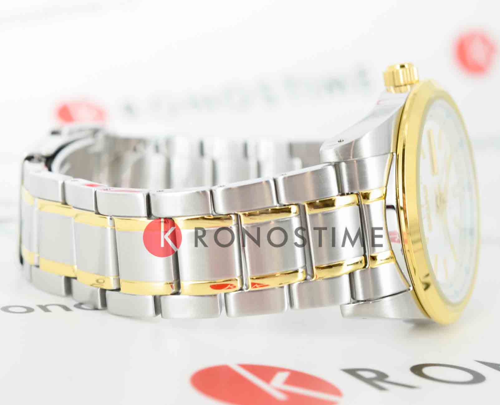 Модель Seiko SARV004 — это элегантные автоматические часы с выразительным двухцветным дизайном и надёжной функциональностью. Корпус диаметром 42 мм выполнен из нержавеющей стали, а элементы корпуса и браслета украшены золотистым PVD-покрытиемPVDУльтратонкое покрытие наносится в технике вакуумного напыления, сочетает в себе нитрид титана особой прочности со слоем золота или оксида хрома. Несёт в себе декоративную или защитную функцию., придающим модели классический и утончённый облик. Водозащита составляет 100 метров, что делает часы универсальными для повседневного использования. Фиксированный стальной безельБезельВнешний ободок, закрепляющий стекло. В спортивных часах так называется поворотное кольцо с делениями на циферблате, выполняет роль таймера – замеряет отрезки времени на шкале. Неподвижный безель – элемент декора. Однонаправленно вращающийся безель на дайверских часах позволяет фиксировать моменты погружения и выныривания на поверхность. с золотистым акцентом обрамляет белый циферблат с минутной шкалой. Золотистые стрелки и метки покрыты люминесцентным покрытиемЛюминесцентное покрытиеПозволяет считывать показания времени в темноте. Производители наносят на стрелки, часовые индексы, безель или поверхность циферблата светонакопительный состав, дающий холодное свечение., обеспечивая хорошую читаемость даже в условиях низкой освещённости. На 3 часах размещено окно дня недели и даты. Циферблат защищён прочным минеральным стекломМинеральное стеклоМинеральное стекло представляет собой искусственно выращенный минерал кварца. Такое стекло отличается особой устойчивостью к повреждениям и царапинам. Уступает по некоторым качествам сапфировому стеклу. Hardlex, устойчивым к царапинам и ударам. Внутри установлен автоматический калибр 4R36 с функцией ручного подзавода, остановкой секундной стрелки и запасом хода до 41 часа. Браслет из нержавеющей стали с центральными звеньями в золотистом тоне дополнен удобной раскладной застёжкойРаскладная застёжкаТакой тип застёжки используется только на браслетах из металла. Она никогда не раскрывается полностью, происходит разделение на 2 и более частей. Раскладывающая застёжка снизит вероятность потери часов к минимуму. с кнопками. Seiko SARV004 — это надёжный и выразительный выбор для тех, кто ищет классический стиль с акцентами, подчёркивающими вкус и уверенность.