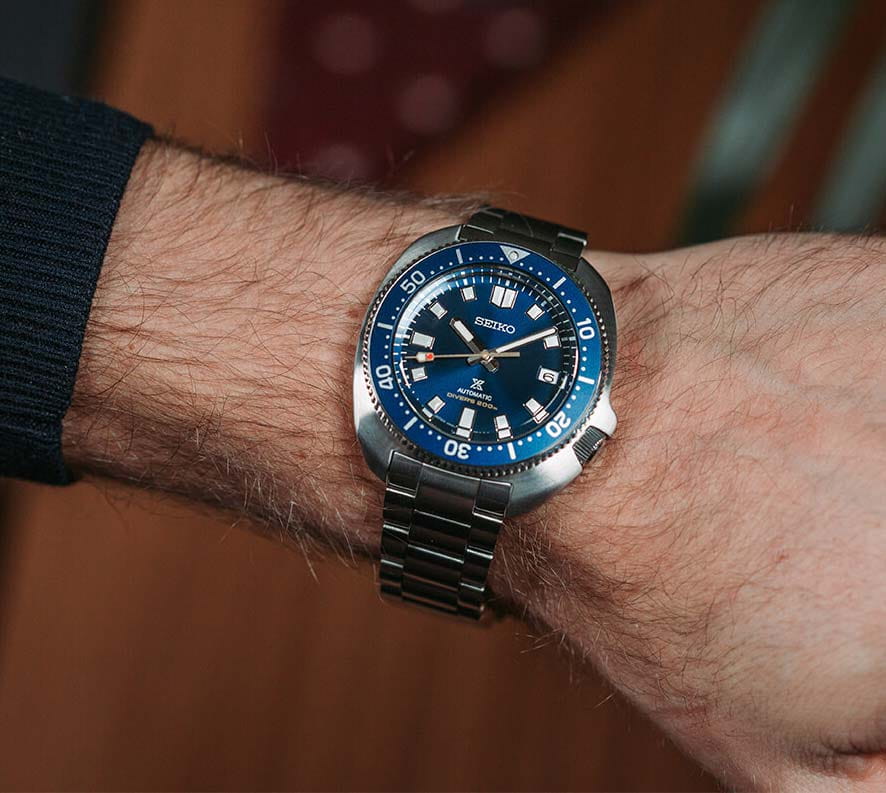Мужские механические часы с автоподзаводом Seiko — это спортивный аксессуар из коллекции Prospex, выпущенный ограниченной серией в честь 55-летия легендарных дайверских часов Seiko — всего 5500 экземпляров. Корпус диаметром 42 мм и толщиной 13 мм выполнен из стали с частичным PVD-покрытиемPVDУльтратонкое покрытие наносится в технике вакуумного напыления, сочетает в себе нитрид титана особой прочности со слоем золота или оксида хрома. Несёт в себе декоративную или защитную функцию.. Циферблат синего цвета оформлен штрихами и логотипом бренда. Окошко даты расположено в положении 3 часов. Стрелки и метки с люминесцентным покрытиемЛюминесцентное покрытиеПозволяет считывать показания времени в темноте. Производители наносят на стрелки, часовые индексы, безель или поверхность циферблата светонакопительный состав, дающий холодное свечение. LumiBrite, обеспечивающим высокую читаемость в темноте. Циферблат защищён изогнутым сапфировым стекломСапфировое стеклоПрочный и надёжный материал из кристалла сапфира синтетического происхождения, характеризующийся особой твёрдостью и устойчивостью к царапинам и повреждениям. с антибликовым покрытиемАнтибликовое покрытиеСлой оксида металла в 0,13-0,3 микрон, благодаря которому стекло часов не бликует и не отражает свет. Антибликовое покрытие уменьшает отражение света в 10 раз, обеспечивая отличную читаемость показателей циферблата. на внутренней поверхности. Механизм — автоматический калибр 6R35 (24 камня, частота 21 600 полуколебаний в час) с возможностью ручного завода и функцией , запас хода до 70 часов. БезельБезельВнешний ободок, закрепляющий стекло. В спортивных часах так называется поворотное кольцо с делениями на циферблате, выполняет роль таймера – замеряет отрезки времени на шкале. Неподвижный безель – элемент декора. Однонаправленно вращающийся безель на дайверских часах позволяет фиксировать моменты погружения и выныривания на поверхность. — однонаправленный, вращающийся. Завинчивающаяся задняя крышка и заводная головка с защитой на позиции 4 часов повышают надёжность. Часы оснащены стальным браслетом с раскладной застёжкойРаскладная застёжкаТакой тип застёжки используется только на браслетах из металла. Она никогда не раскрывается полностью, происходит разделение на 2 и более частей. Раскладывающая застёжка снизит вероятность потери часов к минимуму. с системой блокировки. В комплекте — сменный силиконовый ремешок. Водонепроницаемость 200 м позволяет использовать часы для профессионального плавания и дайвинга. Идеальный выбор для тех, кто ценит историю, точность и мощный дизайн.