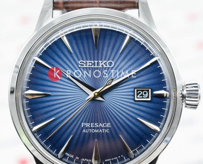 Мужские наручные часы Seiko SRPK15J1 из коллекции Presage Cocktail Time сочетают в себе классический дизайн и надежность современных технологий. Модель обладает круглым корпусом диаметром 40,5 мм, изготовленным из нержавеющей стали, что обеспечивает высокую устойчивость к внешним воздействиям . Толщина корпуса составляет 11,8 мм, а для защиты используется минеральное стеклоМинеральное стеклоМинеральное стекло представляет собой искусственно выращенный минерал кварца. Такое стекло отличается особой устойчивостью к повреждениям и царапинам. Уступает по некоторым качествам сапфировому стеклу. Hardlex Crystal, обеспечивающее прочную защиту от царапин . Ремешок выполнен из кожи на стандартной застежке, которая подчеркивает элегантный стиль модели . Циферблат синего цвета украшен текстурой, вдохновленной культурой японских коктейлей, и оснащен окном даты на позиции «3 часа» . Часы работают на автоматическом механизме с калибром 4R35, который включает 23 камня и обладает запасом хода до 41 часа . Водонепроницаемость составляет WR 50, что позволяет защитить корпус от случайных брызг и кратковременного контакта с водой.