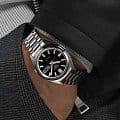 Механические часы с автоподзаводом и возможностью ручной подзаводки оснащены калибром 4R36 — проверенным механизмом, разработанным для надёжности и точности. Механизм имеет 24 драгоценных камня и обеспечивает запас хода до 41 часа. Также реализована функция стоп-секунды для точной установки времени и отображение дня недели и даты. Циферблат дополнен люминесцентным покрытиемЛюминесцентное покрытиеПозволяет считывать показания времени в темноте. Производители наносят на стрелки, часовые индексы, безель или поверхность циферблата светонакопительный состав, дающий холодное свечение. LumiBrite на стрелках и индексах, обеспечивающим отличную читаемость даже в условиях слабого освещения. Защиту циферблата обеспечивает минеральное стеклоМинеральное стеклоМинеральное стекло представляет собой искусственно выращенный минерал кварца. Такое стекло отличается особой устойчивостью к повреждениям и царапинам. Уступает по некоторым качествам сапфировому стеклу. Hardlex выпуклой формы — устойчивое к мелким повреждениям и проверенное временем. Корпус изготовлен из нержавеющей стали, а задняя крышка — завинчивающаяся и прозрачная, что позволяет рассмотреть детали механизма и подчёркивает внимание к внутренней отделке. Часы обладают защитой от магнитных полей до 4800 А/м и водонепроницаемостью , что соответствует защите на глубине до 100 метров и позволяет использовать их при плавании или занятиях водными видами спорта. Браслет выполнен из стали и оснащён трёхсгибной раскладной застёжкойРаскладная застёжкаТакой тип застёжки используется только на браслетах из металла. Она никогда не раскрывается полностью, происходит разделение на 2 и более частей. Раскладывающая застёжка снизит вероятность потери часов к минимуму. с кнопочным механизмом, обеспечивающей комфорт и уверенную фиксацию на запястье. Расстояние между ушками составляет 18 мм, что делает модель совместимой с различными типами браслетов и ремешков. Эти часы станут универсальным аксессуаром для тех, кто ценит сочетание технологичности, прочности и эстетики — идеальный выбор как для повседневного использования, так и для активного образа жизни.