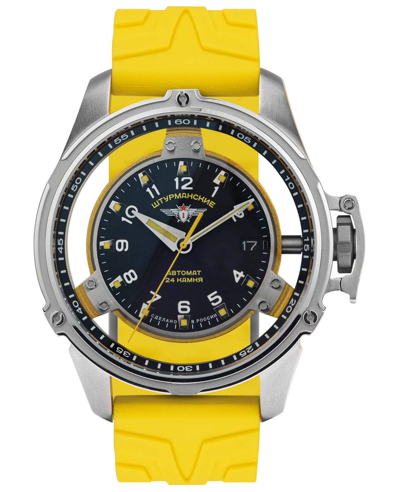Штурманские мужские российские механические часы Штурманские Марс 2 NH35/9035977, механический механизм (автоматический калибр) с высокой точностью. Сапфировое стеклоСапфировое стеклоПрочный и надёжный материал из кристалла сапфира синтетического происхождения, характеризующийся особой твёрдостью и устойчивостью к царапинам и повреждениям. устойчивое к появлению царапин, обладающее высокой прозрачностью. Класс водозащиты: 50 метров, позволит защитить корпус от случайных брызг или капель дождя. Корпус часов изготовлен из стали. Силиконовый ремешок на стандартной застёжке. Стрелки и метки с люминесцентным покрытиемЛюминесцентное покрытиеПозволяет считывать показания времени в темноте. Производители наносят на стрелки, часовые индексы, безель или поверхность циферблата светонакопительный состав, дающий холодное свечение.. Они защищены от влаги и вибрации, оснащены надежным японским калибром NH35 Seiko с автоматическим подзаводом и запасом хода 41 час. Боковые поверхности корпуса покрыты эмалью ручной работы. Заводная головка дополнительно защищена от попадания влаги. Амортизаторы между корпусом и механизмом защищают калибр от вибрации.