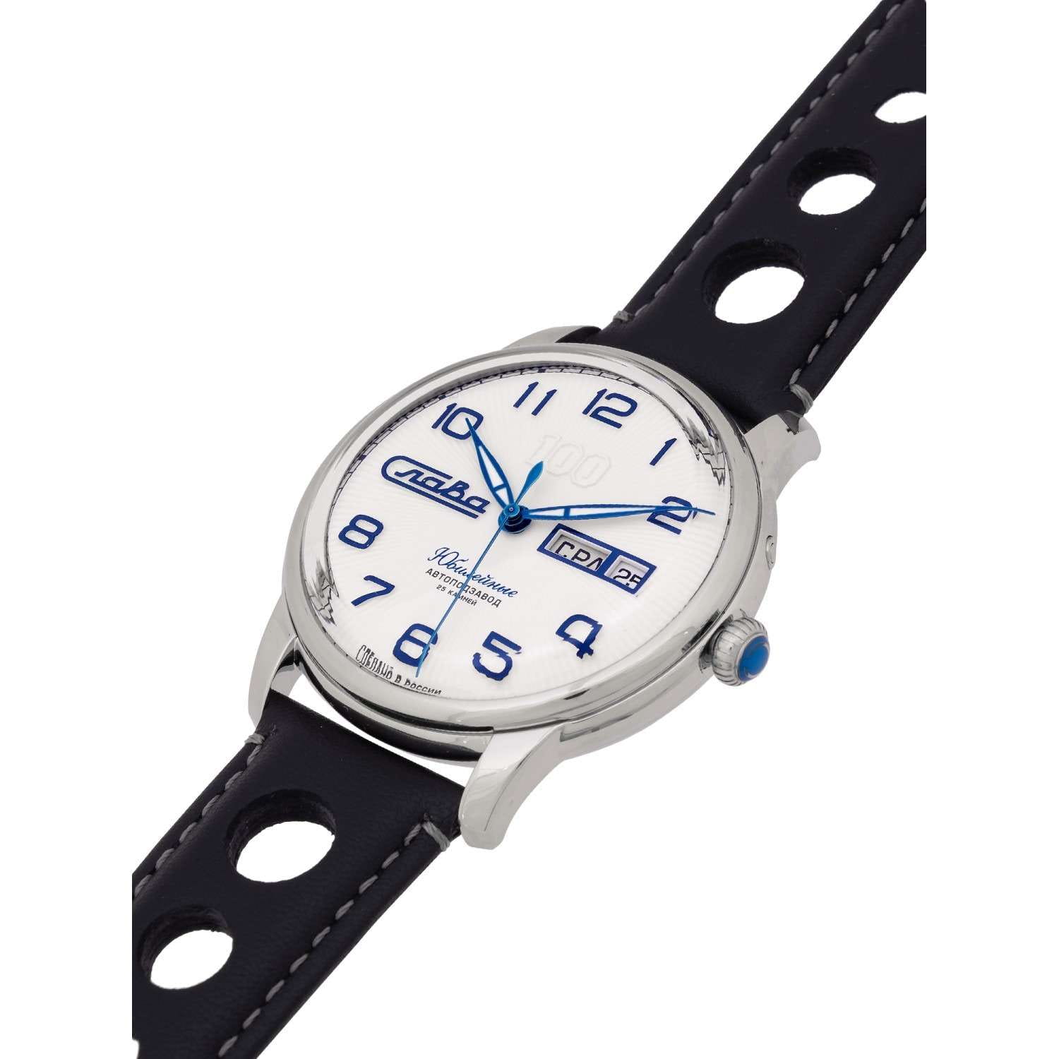 Часы Слава Юбилейные 2600670/300-2427 представляют собой воплощение российского часового искусства, сочетая в себе традиции и современные технологии. Эти механические часы с автоподзаводом оснащены калибром «Слава 2427», который обеспечивает надежную и точную работу. Корпус из высококачественной стали диаметром 44 мм и толщиной 14,5 мм придает часам солидность и долговечность. Циферблат выполнен в благородном белом цвете и оформлен арабскими цифрами, обеспечивая удобство чтения времени. Прочное выпуклое сапфировое стеклоСапфировое стеклоПрочный и надёжный материал из кристалла сапфира синтетического происхождения, характеризующийся особой твёрдостью и устойчивостью к царапинам и повреждениям. защищает циферблат от царапин и повреждений. Особенностью модели является наличие календаря, отображающего число и день недели в положении 3 часа. Стрелки с люминесцентным покрытиемЛюминесцентное покрытиеПозволяет считывать показания времени в темноте. Производители наносят на стрелки, часовые индексы, безель или поверхность циферблата светонакопительный состав, дающий холодное свечение., что облегчает чтение времени даже в условиях слабого освещения. Часы обладают водозащитой уровня 100WR, что делает их подходящими для повседневного ношения и активного образа жизни. Кожаный ремешок с классической застежкой добавляет модели изысканности и комфорта в носке. Эта модель представлена в лимитированной серии из 300 экземпляров, что делает её не только надежным функциональным аксессуаром, но и ценным предметом для коллекционеров. Прозрачная задняя крышка позволяет наблюдать за работой механизма, который включает в себя 25 камней и имеет частоту 18000 полуколебаний в час. Запас хода составляет до 40 часов, а противоударное устройство оси баланса обеспечивает дополнительную надежность.