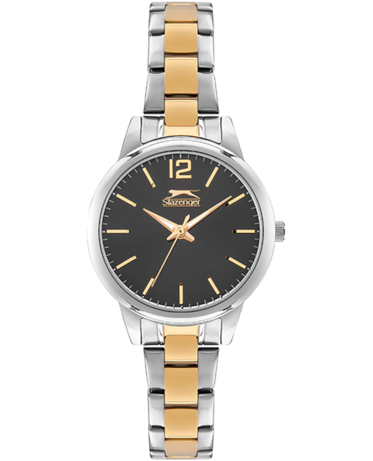 Женские наручные часы Slazenger SL.09.2016.3.03 из коллекции, сочетающей элегантность и практичность в классическом дизайне. Модель обладает круглым корпусом диаметром 32 мм, изготовленным из суперметалла, что обеспечивает высокую устойчивость к внешним воздействиям. Браслет выполнен из того же материала с частичным IP-покрытиемIP-покрытиеМетод ионного напыления. Демонстрирует повышенную устойчивость к истиранию, окислению и химическим веществам. Под воздействием высокого давления и температуры около 1500°C молекулы металла надёжно соединяются с частицами корпуса часов. и раскладной застежкойРаскладной замокДанный вариант застежки используется только на часах с металлическим браслетом. Отличительная особенность такого крепления в том, что длина браслета становится универсальной и вы можете самостоятельно отрегулировать нужный вам размер – застежка просто двигается по браслету часов., гарантирующая комфортное ношение и безопасность. Для защиты используется минеральное стеклоМинеральное стеклоМинеральное стекло представляет собой искусственно выращенный минерал кварца. Такое стекло отличается особой устойчивостью к повреждениям и царапинам. Уступает по некоторым качествам сапфировому стеклу., обеспечивающее прочную защиту от царапин. Часы работают на японском кварцевом механизме, что гарантирует точное время без необходимости подзаводки. Водонепроницаемость часов достигает 5 атмосфер (50 метров), что позволяет использовать их для ежедневного использования, но не рекомендуется для плавания или дайвинга. Циферблат черного цвета добавляет модели особый шарм и стиль.