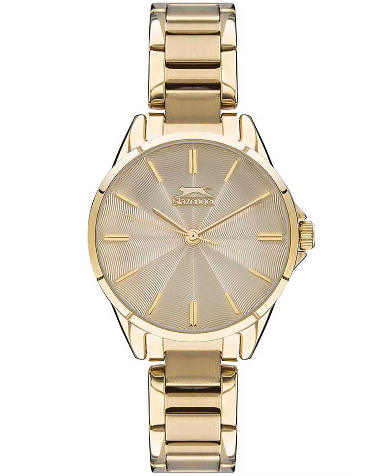 Slazenger SL.09.2023.3.05 – элегантные женские часы, сочетающие стильный дизайн и функциональность. Корпус диаметром 36 мм и толщиной 9 мм выполнен из суперметалла с PVD-покрытиемPVDУльтратонкое покрытие наносится в технике вакуумного напыления, сочетает в себе нитрид титана особой прочности со слоем золота или оксида хрома. Несёт в себе декоративную или защитную функцию., обеспечивающего прочность и долговечность. Циферблат защищён минеральным стекломМинеральное стеклоМинеральное стекло представляет собой искусственно выращенный минерал кварца. Такое стекло отличается особой устойчивостью к повреждениям и царапинам. Уступает по некоторым качествам сапфировому стеклу., устойчивым к царапинам. Часы оснащены точным кварцевым механизмом, обеспечивающим надёжное отображение времени. Браслет из суперметалла с PVD-покрытиемPVDУльтратонкое покрытие наносится в технике вакуумного напыления, сочетает в себе нитрид титана особой прочности со слоем золота или оксида хрома. Несёт в себе декоративную или защитную функцию. шириной 16 мм оснащён раскладной застёжкойРаскладная застёжкаТакой тип застёжки используется только на браслетах из металла. Она никогда не раскрывается полностью, происходит разделение на 2 и более частей. Раскладывающая застёжка снизит вероятность потери часов к минимуму., обеспечивающей комфортное ношение и надёжную фиксацию на запястье. Водозащита до 30 метров (3 ATM) защищает часы от случайных брызг и дождя, делая их подходящими для повседневного использования.