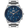 Мужские наручные часы Slazenger SL.09.2027.2.04 сочетают в себе классический дизайн и надежность современных технологий. Модель обладает круглым корпусом диаметром 45 мм, изготовленным из суперметалла. БезельБезельВнешний ободок, закрепляющий стекло. В спортивных часах так называется поворотное кольцо с делениями на циферблате, выполняет роль таймера – замеряет отрезки времени на шкале. Неподвижный безель – элемент декора. Однонаправленно вращающийся безель на дайверских часах позволяет фиксировать моменты погружения и выныривания на поверхность. с IP-покрытиеIP-покрытиеМетод ионного напыления. Демонстрирует повышенную устойчивость к истиранию, окислению и химическим веществам. Под воздействием высокого давления и температуры около 1500°C молекулы металла надёжно соединяются с частицами корпуса часов., что обеспечивает высокую устойчивость к внешним воздействиям. Браслет выполнен из суперметалла с раскладной застежкойРаскладной замокДанный вариант застежки используется только на часах с металлическим браслетом. Отличительная особенность такого крепления в том, что длина браслета становится универсальной и вы можете самостоятельно отрегулировать нужный вам размер – застежка просто двигается по браслету часов., гарантирующей комфортное ношение и безопасность.