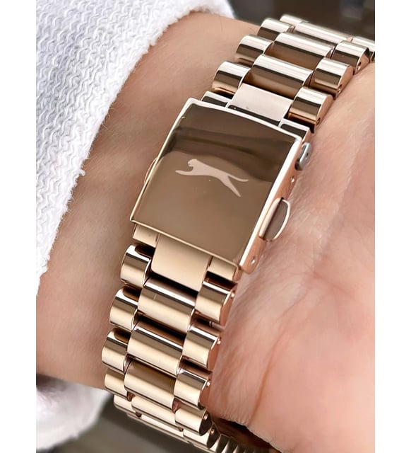 Женские наручные часы Slazenger SL.09.2063.4.02 сочетают в себе классический дизайн и высокое качество исполнения. Модель обладает круглым корпусом диаметром 36 мм, изготовленным из суперметалла с золотистым IP-покрытиемIP-покрытиеМетод ионного напыления. Демонстрирует повышенную устойчивость к истиранию, окислению и химическим веществам. Под воздействием высокого давления и температуры около 1500°C молекулы металла надёжно соединяются с частицами корпуса часов. покрытием, что обеспечивает устойчивость к внешним воздействиям. Браслет выполнен из суперметалла с IP-покрытиемIP-покрытиеМетод ионного напыления. Демонстрирует повышенную устойчивость к истиранию, окислению и химическим веществам. Под воздействием высокого давления и температуры около 1500°C молекулы металла надёжно соединяются с частицами корпуса часов. на раскладной застёжкеРаскладная застёжкаТакой тип застёжки используется только на браслетах из металла. Она никогда не раскрывается полностью, происходит разделение на 2 и более частей. Раскладывающая застёжка снизит вероятность потери часов к минимуму.. Белый циферблат украшен логотипом бренда и метками времени. Имеются дополнительные малые циферблаты для отображения даты, дня недели и текущего времени в 24-часовом формате. Для защиты используется минеральное стеклоМинеральное стеклоМинеральное стекло представляет собой искусственно выращенный минерал кварца. Такое стекло отличается особой устойчивостью к повреждениям и царапинам. Уступает по некоторым качествам сапфировому стеклу., обеспечивающее прочную защиту от царапин. Стрелки и метки имеют люминесцентное покрытиеЛюминесцентное покрытиеПозволяет считывать показания времени в темноте. Производители наносят на стрелки, часовые индексы, безель или поверхность циферблата светонакопительный состав, дающий холодное свечение., что позволяет легко читать время в темноте. Часы работают на японском кварцевом механизме, который обеспечивает точность хода без необходимости подзаводки. Водонепроницаемость часов составляет 3 атмосферы (WR30), что позволяет защитить корпус от случайных брызг или капель дождя.