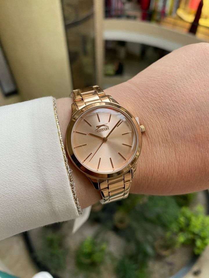 Часы Slazenger SL.09.2101.3.02 станут элегантным дополнением вашего образа. Изящный циферблат цвета шампань заключен в корпус и безельБезельВнешний ободок, закрепляющий стекло. В спортивных часах так называется поворотное кольцо с делениями на циферблате, выполняет роль таймера – замеряет отрезки времени на шкале. Неподвижный безель – элемент декора. Однонаправленно вращающийся безель на дайверских часах позволяет фиксировать моменты погружения и выныривания на поверхность., выполненные из прочного суперметалла с IP-покрытиемIP-покрытиеМетод ионного напыления. Демонстрирует повышенную устойчивость к истиранию, окислению и химическим веществам. Под воздействием высокого давления и температуры около 1500°C молекулы металла надёжно соединяются с частицами корпуса часов.. Эти женские часы оснащены надежным кварцевым механизмом и защищены от воды на уровне 3 АТМ, что делает их подходящими для повседневного использования. Браслет цвета розового золота из суперметалла с IP-покрытиемIP-покрытиеМетод ионного напыления. Демонстрирует повышенную устойчивость к истиранию, окислению и химическим веществам. Под воздействием высокого давления и температуры около 1500°C молекулы металла надёжно соединяются с частицами корпуса часов. с раскладной застёжкойРаскладная застёжкаТакой тип застёжки используется только на браслетах из металла. Она никогда не раскрывается полностью, происходит разделение на 2 и более частей. Раскладывающая застёжка снизит вероятность потери часов к минимуму. обеспечивает комфортное прилегание на запястье. Минеральное стеклоМинеральное стеклоМинеральное стекло представляет собой искусственно выращенный минерал кварца. Такое стекло отличается особой устойчивостью к повреждениям и царапинам. Уступает по некоторым качествам сапфировому стеклу. гарантирует защиту от царапин.