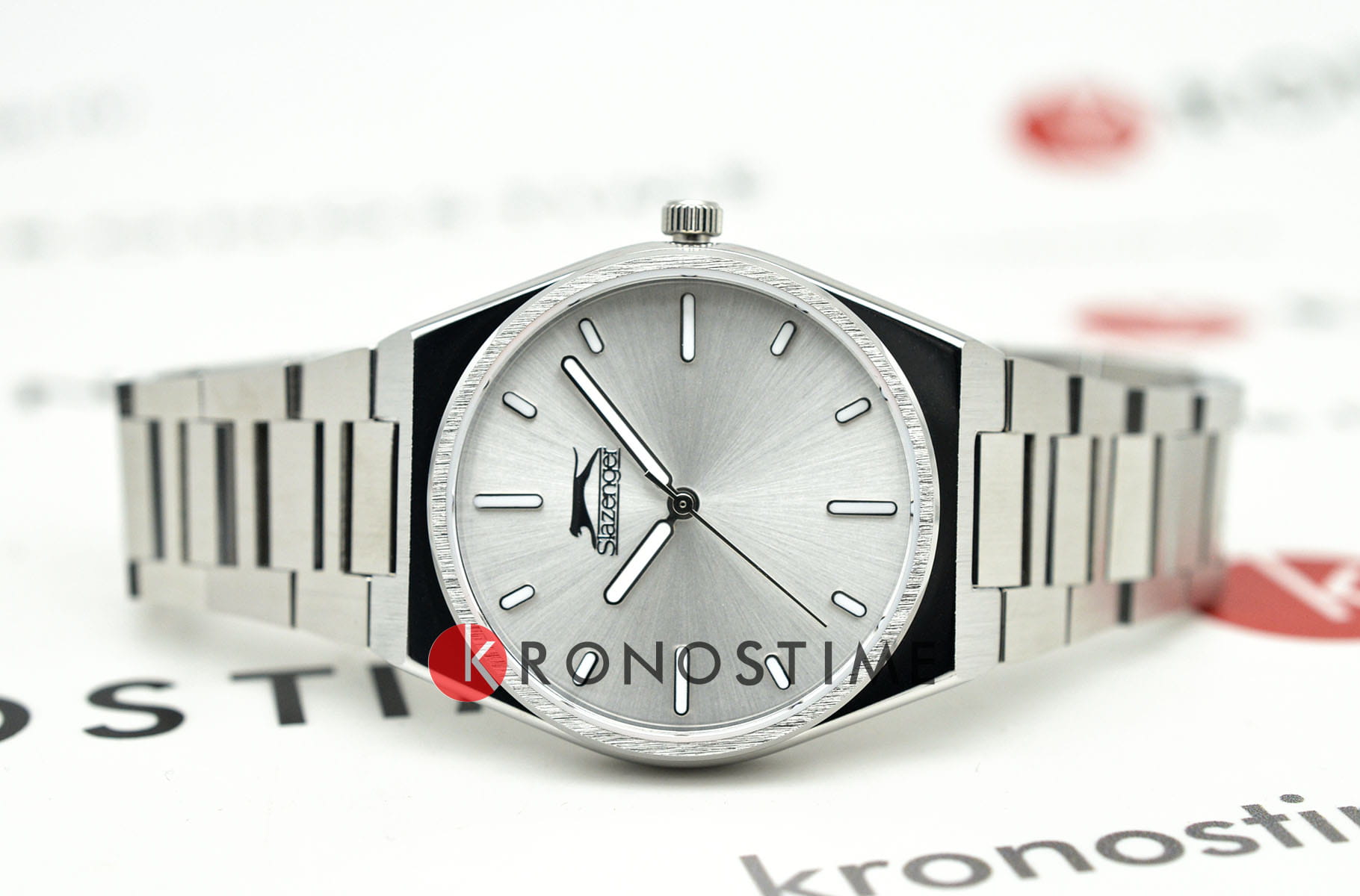 Женские наручные часы Slazenger SL.09.2116.3.01 сочетают в себе классический дизайн и надежность современных технологий. Модель обладает бочкообразным корпусом диаметром 34 мм, изготовленным из суперметалла, что обеспечивает высокую устойчивость к внешним воздействиям. Браслет выполнен из стали с раскладной застежкойРаскладной замокДанный вариант застежки используется только на часах с металлическим браслетом. Отличительная особенность такого крепления в том, что длина браслета становится универсальной и вы можете самостоятельно отрегулировать нужный вам размер – застежка просто двигается по браслету часов., гарантирующей комфортное ношение и безопасность. Циферблат декорирован стрелками и индексами, которые обеспечивают читаемость времени даже в условиях недостаточной освещенности. Для защиты используется минеральное стеклоМинеральное стеклоМинеральное стекло представляет собой искусственно выращенный минерал кварца. Такое стекло отличается особой устойчивостью к повреждениям и царапинам. Уступает по некоторым качествам сапфировому стеклу., обеспечивающее прочную защиту от царапин. Часы работают на кварцевом механизме, что гарантирует точное время без необходимости подзаводки. Модель также оснащена функцией отображения даты, делая ее практичной для повседневного использования. Водонепроницаемость часов достигает 3 атмосфер, что позволяет использовать их при мытье рук или хождении под мелким дождем, однако не рекомендуется для плавания или других водных видов спорта. Вес модели составляет 83 грамма.