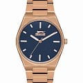 Женские наручные часы Slazenger SL.09.2116.3.02 — это элегантный аксессуар, сочетающий в себе стиль и функциональность. Модель обладает круглым корпусом диаметром 34 мм. Корпус и браслет часов выполнены из суперметалла с IP-покрытиемIP-покрытиеМетод ионного напыления. Демонстрирует повышенную устойчивость к истиранию, окислению и химическим веществам. Под воздействием высокого давления и температуры около 1500°C молекулы металла надёжно соединяются с частицами корпуса часов. цвета розового золота, что обеспечивает устойчивость к царапинам и коррозии. Браслет с раскладной застежкойРаскладная застёжкаТакой тип застёжки используется только на браслетах из металла. Она никогда не раскрывается полностью, происходит разделение на 2 и более частей. Раскладывающая застёжка снизит вероятность потери часов к минимуму., которая гарантирует удобство и надежность при ношении. Для защиты синего циферблата используется минеральное стеклоМинеральное стеклоМинеральное стекло представляет собой искусственно выращенный минерал кварца. Такое стекло отличается особой устойчивостью к повреждениям и царапинам. Уступает по некоторым качествам сапфировому стеклу., устойчивое к царапинам и повреждениям. Люминесцентное покрытиеЛюминесцентное покрытиеПозволяет считывать показания времени в темноте. Производители наносят на стрелки, часовые индексы, безель или поверхность циферблата светонакопительный состав, дающий холодное свечение. на стрелках и метках обеспечивает отличную видимость в темноте. Часы оснащены кварцевым механизмом, обеспечивающим точность хода с минимальной погрешностью. Водонепроницаемость модели составляет 30 метров (3 ATM), что позволяет использовать их при мытье рук или под дождем, но не рекомендуется для плавания или дайвинга.