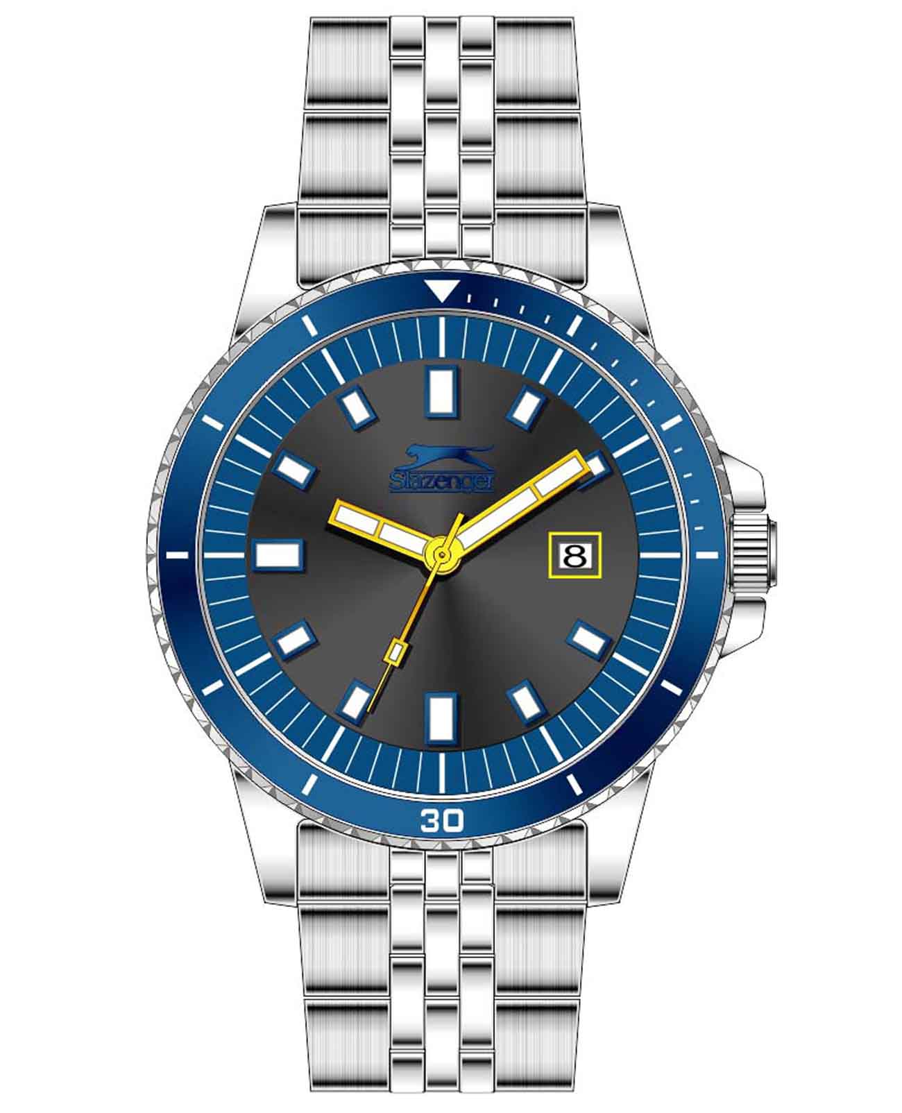 Часы Slazenger SL.09.2135.1.01 воплощают в себе элегантность и практичность, идеально подходящие для современных мужчин. Их черно-синий циферблат, защищенный минеральным стекломМинеральное стеклоМинеральное стекло представляет собой искусственно выращенный минерал кварца. Такое стекло отличается особой устойчивостью к повреждениям и царапинам. Уступает по некоторым качествам сапфировому стеклу., заключен в серебристый корпус диаметром 45 мм, который изготовлен из прочного суперметалла. Часы оснащены удобным окошком даты и стрелками контрастного цвета. Надежный кварцевый механизм обеспечивает точность, а водозащита 5 ATM делает их устойчивыми к воздействию воды. Стальной браслет из суперметалла имеет раскладную застёжкуРаскладная застёжкаТакой тип застёжки используется только на браслетах из металла. Она никогда не раскрывается полностью, происходит разделение на 2 и более частей. Раскладывающая застёжка снизит вероятность потери часов к минимуму., что подчеркивает современный стиль и позволяет легко снимать часы. Люминесцентное покрытиеЛюминесцентное покрытиеПозволяет считывать показания времени в темноте. Производители наносят на стрелки, часовые индексы, безель или поверхность циферблата светонакопительный состав, дающий холодное свечение. на стрелках и метках обеспечивает отличную видимость в темноте.