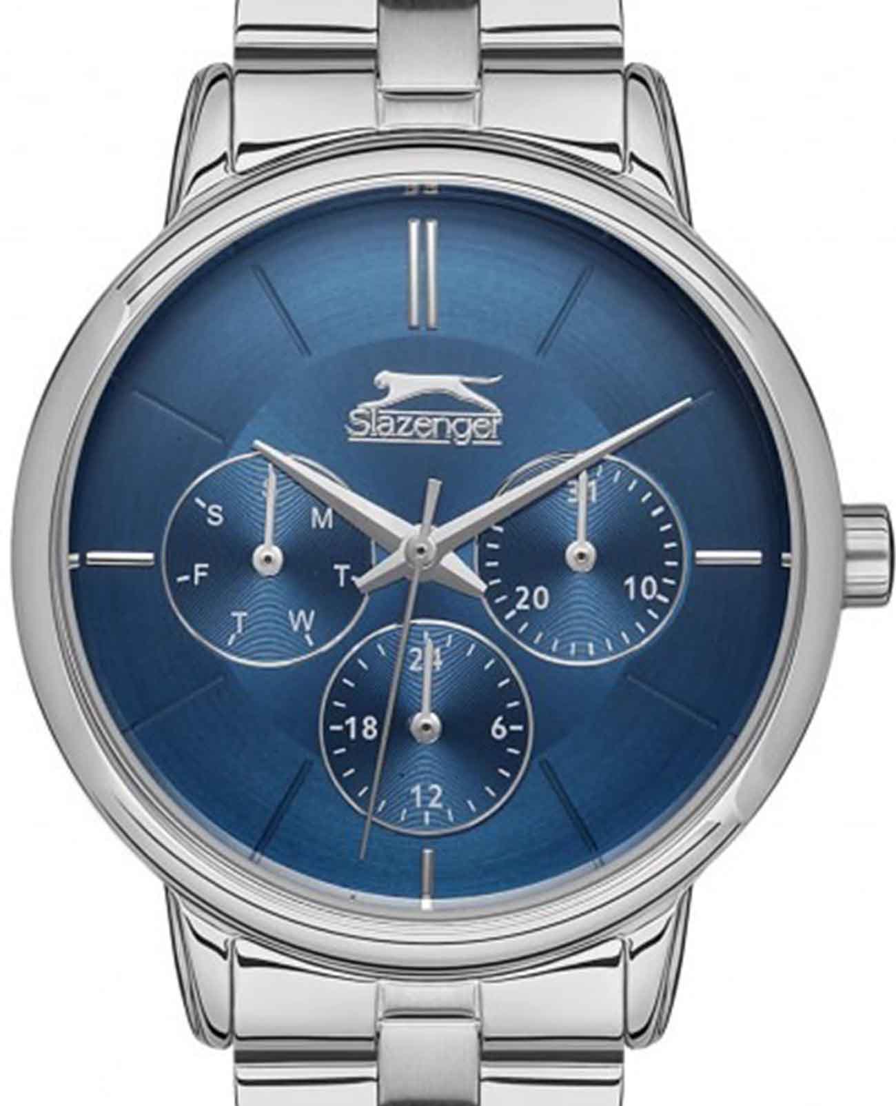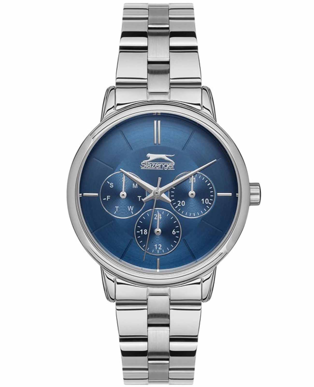 Эти элегантные женские часы Slazenger SL.09.2145.4.05 идеально подойдут для тех, кто ценит стиль и функциональность. Произведенные в Англии, они оснащены надежным кварцевым механизмом, который обеспечивает точное время. Корпус и браслет часов выполнены из металла, придающего изделию современный и изысканный вид. Минеральное стеклоМинеральное стеклоМинеральное стекло представляет собой искусственно выращенный минерал кварца. Такое стекло отличается особой устойчивостью к повреждениям и царапинам. Уступает по некоторым качествам сапфировому стеклу. защищает синий циферблат от царапин и повреждений, а водозащита уровня WR 30 позволяет использовать часы в условиях повышенной влажности.  Диаметр корпуса составляет 35 мм, а толщина — 9 мм, что делает их аккуратными и утонченными, идеально подходящими для женского запястья. Ширина браслета равна 16 мм, и он оснащен раскладной застёжкойРаскладная застёжкаТакой тип застёжки используется только на браслетах из металла. Она никогда не раскрывается полностью, происходит разделение на 2 и более частей. Раскладывающая застёжка снизит вероятность потери часов к минимуму. для удобства ношения. Часы оснащены дополнительными функциями: на малых циферблатах отображаются дата и день недели, а также текущее время в 24-часовом формате, что добавляет удобства в использовании. Эти часы станут отличным дополнением к любому образу, подчеркивая вашу индивидуальность и утонченность.