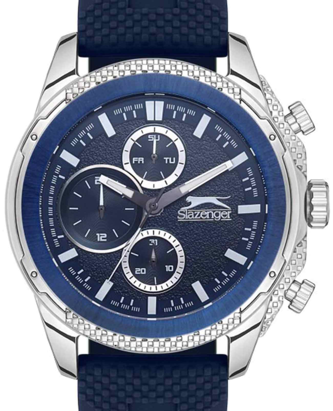 Часы Slazenger SL.09.2153.2.05 представляют собой стильный и функциональный аксессуар для мужчин. Эти кварцевые часы идеально подходят для тех, кто ценит как точность, так и современный дизайн. Корпус из суперметалла придаёт модели прочность и долговечность, а синий силиконовый ремешок обеспечивает комфортное ношение и отлично сочетается с общим дизайном часов. БезельБезельВнешний ободок, закрепляющий стекло. В спортивных часах так называется поворотное кольцо с делениями на циферблате, выполняет роль таймера – замеряет отрезки времени на шкале. Неподвижный безель – элемент декора. Однонаправленно вращающийся безель на дайверских часах позволяет фиксировать моменты погружения и выныривания на поверхность. часов из суперметалла с синим IP-покрытиемIP-покрытиеМетод ионного напыления. Демонстрирует повышенную устойчивость к истиранию, окислению и химическим веществам. Под воздействием высокого давления и температуры около 1500°C молекулы металла надёжно соединяются с частицами корпуса часов.. Диаметр корпуса составляет 46 мм, а толщина — 12 мм, что делает часы выразительными и заметными на запястье. Минеральное стеклоМинеральное стеклоМинеральное стекло представляет собой искусственно выращенный минерал кварца. Такое стекло отличается особой устойчивостью к повреждениям и царапинам. Уступает по некоторым качествам сапфировому стеклу. защищает циферблат от царапин и повреждений, сохраняя его внешний вид. Часы обладают водозащитой уровня WR 50, что позволяет им выдерживать воздействие воды в повседневных ситуациях. Одной из ключевых особенностей является наличие дополнительных малых циферблатов, которые отображают дату, день недели и текущее время в 24-часовом формате. Все эти функции обеспечивают удобное пользование и позволяют всегда оставаться в курсе времени. Люминесцентное покрытиеЛюминесцентное покрытиеПозволяет считывать показания времени в темноте. Производители наносят на стрелки, часовые индексы, безель или поверхность циферблата светонакопительный состав, дающий холодное свечение. на стрелках обеспечивает отличную видимость в темноте. Силиконовый ремешок оснащен классической застежкой, что обеспечивает надежную фиксацию на руке. Вес часов составляет 104 грамма, что делает их достаточно легкими для повседневного использования.