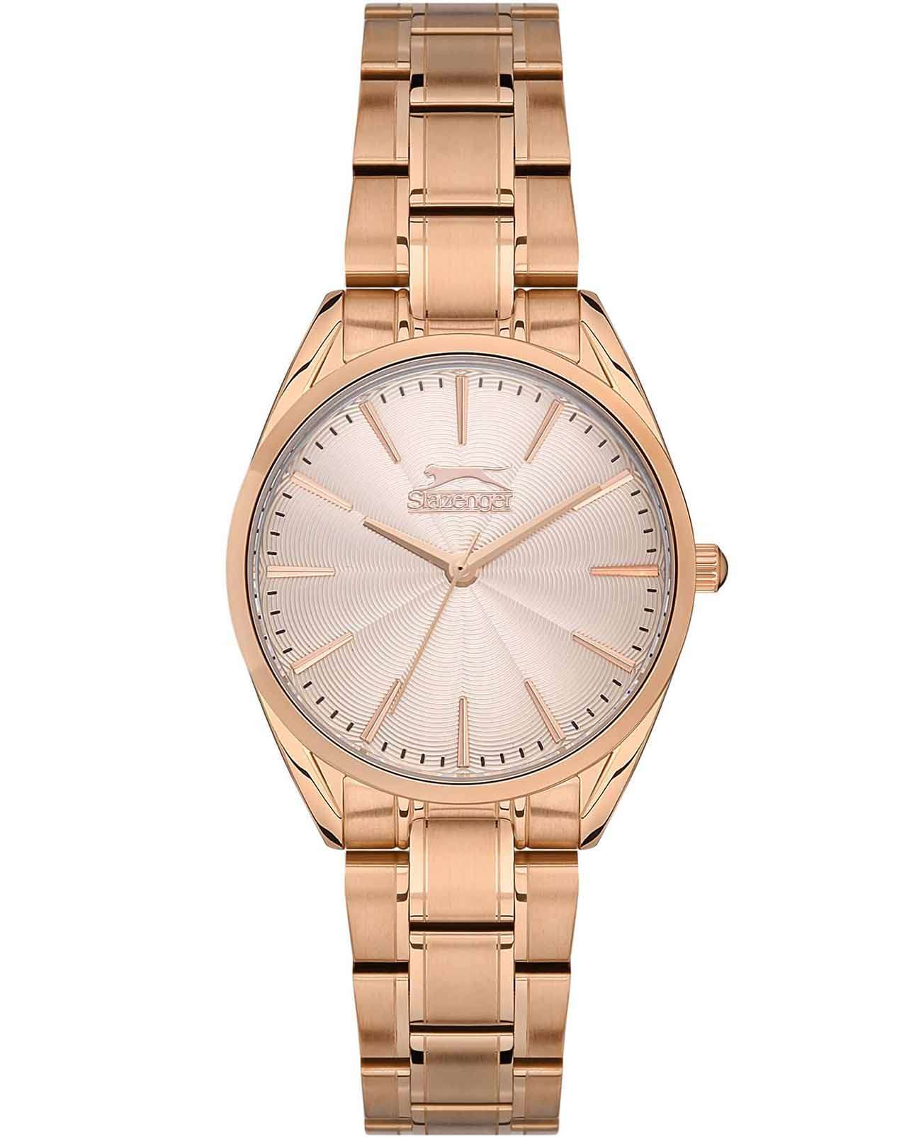 Эти стильные женские часы Slazenger SL.09.2155.3.04 идеально подчеркивают утонченный вкус своей обладательницы. Они оснащены надежным кварцевым механизмом, который обеспечивает точность хода. Корпус выполнен из качественного суперметалла с розово-золотистым IP-покрытиемIP-покрытиеМетод ионного напыления. Демонстрирует повышенную устойчивость к истиранию, окислению и химическим веществам. Под воздействием высокого давления и температуры около 1500°C молекулы металла надёжно соединяются с частицами корпуса часов., что придаёт аксессуару современный вид и дополнительную прочность. Минеральное стеклоМинеральное стеклоМинеральное стекло представляет собой искусственно выращенный минерал кварца. Такое стекло отличается особой устойчивостью к повреждениям и царапинам. Уступает по некоторым качествам сапфировому стеклу. надежно защищает циферблат от возможных повреждений. Золотистый циферблат выполнен по технологии Sunray, что создает эффект солнечных лучей и придает часам особую изысканность. Металлический браслет с розово-золотистым IP-покрытиемIP-покрытиеМетод ионного напыления. Демонстрирует повышенную устойчивость к истиранию, окислению и химическим веществам. Под воздействием высокого давления и температуры около 1500°C молекулы металла надёжно соединяются с частицами корпуса часов. и с раскладной застёжкойРаскладная застёжкаТакой тип застёжки используется только на браслетах из металла. Она никогда не раскрывается полностью, происходит разделение на 2 и более частей. Раскладывающая застёжка снизит вероятность потери часов к минимуму. обеспечивает комфортное и надежное прилегание к запястью. Диаметр корпуса составляет 32 мм, а толщина — всего 9 мм, что придаёт часам изящность и элегантность. Водозащита уровня WR 30 позволяет не беспокоиться о небольших брызгах, которые могут возникнуть в повседневной жизни. Вес часов составляет 78 грамм, что делает их легкими и удобными для ежедневного ношения. Эти часы станут идеальным аксессуаром, подчеркивающим стиль и индивидуальность современной женщины.
