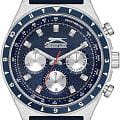 Часы Slazenger SL.09.2247.2.02 — это современная модель с выразительным спортивным характером, идеально подходящая для активного образа жизни. Корпус выполнен из прочного металла, синий циферблат защищён минеральным стекломМинеральное стеклоМинеральное стекло представляет собой искусственно выращенный минерал кварца. Такое стекло отличается особой устойчивостью к повреждениям и царапинам. Уступает по некоторым качествам сапфировому стеклу., устойчивым к царапинам. Часы также оснащены шкалой тахиметраТахиметрРазмеченная шкала, располагается на ободке или безеле часов. Тахиметр позволяет рассчитать скорость на определённом участке пути, расстояние измеряется в километрах или милях., что добавляет им функциональности и может быть полезно для измерения скорости. На безельБезельВнешний ободок, закрепляющий стекло. В спортивных часах так называется поворотное кольцо с делениями на циферблате, выполняет роль таймера – замеряет отрезки времени на шкале. Неподвижный безель – элемент декора. Однонаправленно вращающийся безель на дайверских часах позволяет фиксировать моменты погружения и выныривания на поверхность. нанесено синее IP-покрытиеIP-покрытиеМетод ионного напыления. Демонстрирует повышенную устойчивость к истиранию, окислению и химическим веществам. Под воздействием высокого давления и температуры около 1500°C молекулы металла надёжно соединяются с частицами корпуса часов.. Диаметр корпуса составляет 46 мм, толщина — 11 мм, а ширина ремешка — 22 мм. Лёгкий и комфортный синий резиновый ремешок оснащён классической застёжкой, благодаря чему часы удобно сидят на руке и не вызывают дискомфорта даже при длительном ношении. Вес модели составляет всего 79 грамм. Надёжный кварцевый механизм обеспечивает точность времени, а уровень водозащиты WR 50 позволяет использовать часы в повседневных условиях, не опасаясь случайных брызг или дождя. Для удобства использования в темное время суток предусмотрено люминесцентное покрытиеЛюминесцентное покрытиеПозволяет считывать показания времени в темноте. Производители наносят на стрелки, часовые индексы, безель или поверхность циферблата светонакопительный состав, дающий холодное свечение. стрелок и меток. Дополнительные малые циферблаты показывают дату, день недели и текущее время в 24-часовом формате, что делает использование часов ещё более удобным и функциональным.