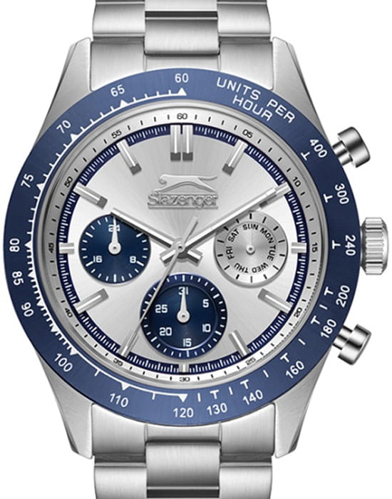 Slazenger SL.09.2358.2.05 — стильные мужские часы, сочетающие современный дизайн и функциональность. Корпус выполнен из суперметалла, а безельБезельВнешний ободок, закрепляющий стекло. В спортивных часах так называется поворотное кольцо с делениями на циферблате, выполняет роль таймера – замеряет отрезки времени на шкале. Неподвижный безель – элемент декора. Однонаправленно вращающийся безель на дайверских часах позволяет фиксировать моменты погружения и выныривания на поверхность. покрыт PVDPVDУльтратонкое покрытие наносится в технике вакуумного напыления, сочетает в себе нитрид титана особой прочности со слоем золота или оксида хрома. Несёт в себе декоративную или защитную функцию.-покрытием, придающим модели современный и элегантный вид. Минеральное стеклоМинеральное стеклоМинеральное стекло представляет собой искусственно выращенный минерал кварца. Такое стекло отличается особой устойчивостью к повреждениям и царапинам. Уступает по некоторым качествам сапфировому стеклу. защищает циферблат от царапин и гарантирует превосходную читаемость. Циферблат с контрастными метками и стрелками обеспечивает отличную видимость в любых условиях. Браслет из суперметалла обеспечивает комфортное ношение и надёжную фиксацию на запястье. Функциональность дополняется индикацией даты, дня недели и 24-часовым форматом времени. Водонепроницаемость 50 метров делает модель устойчивой к случайным брызгам, идеально подходя для повседневного использования.