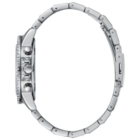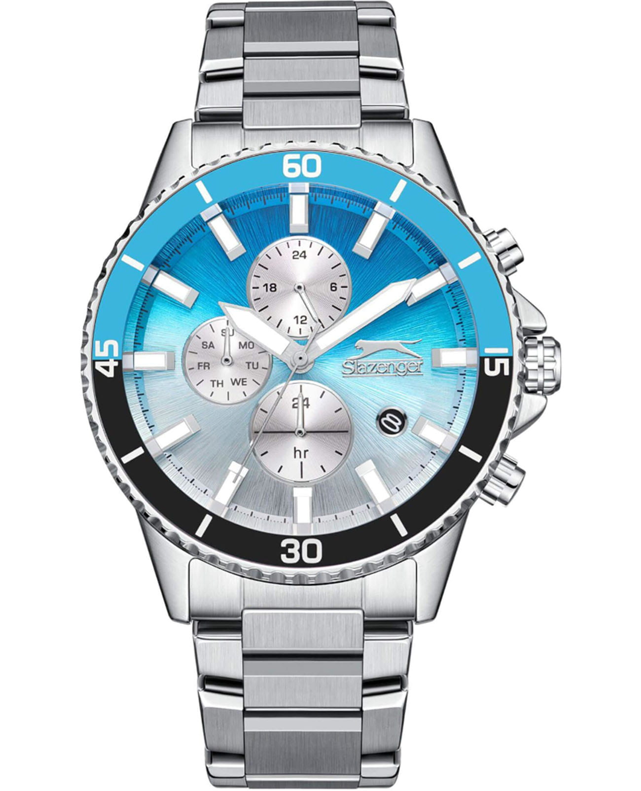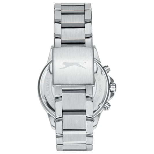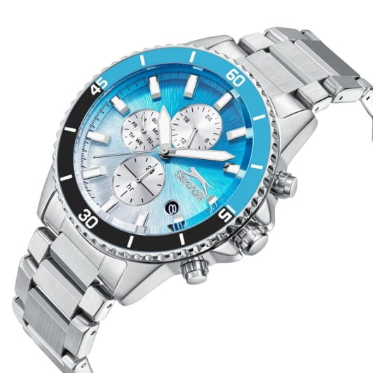 Мужские кварцевые часы Slazenger — это выразительный и функциональный аксессуар. Корпус диаметром 44 мм и толщиной 13 мм выполнен из суперметалла. БезельБезельВнешний ободок, закрепляющий стекло. В спортивных часах так называется поворотное кольцо с делениями на циферблате, выполняет роль таймера – замеряет отрезки времени на шкале. Неподвижный безель – элемент декора. Однонаправленно вращающийся безель на дайверских часах позволяет фиксировать моменты погружения и выныривания на поверхность. из суперметалла с IP-покрытиемIP-покрытиеМетод ионного напыления. Демонстрирует повышенную устойчивость к истиранию, окислению и химическим веществам. Под воздействием высокого давления и температуры около 1500°C молекулы металла надёжно соединяются с частицами корпуса часов.. Циферблат голубого цвета оформлен индексами и стрелками. Циферблат защищён минеральным стекломМинеральное стеклоМинеральное стекло представляет собой искусственно выращенный минерал кварца. Такое стекло отличается особой устойчивостью к повреждениям и царапинам. Уступает по некоторым качествам сапфировому стеклу.. Механизм — кварцевый. Часы оснащены индикацией дня недели, даты и 12/24-часового формата времени. Окошко даты расположено между 4 и 5 часами. Часы оснащены браслетом из суперметалла с раскладной застёжкойРаскладная застёжкаТакой тип застёжки используется только на браслетах из металла. Она никогда не раскрывается полностью, происходит разделение на 2 и более частей. Раскладывающая застёжка снизит вероятность потери часов к минимуму.. Водонепроницаемость 100 м позволяет использовать часы для плавания и повседневного ношения. Гарантия — 12 месяцев. Идеальный выбор для тех, кто ценит стиль, функциональность и качество.