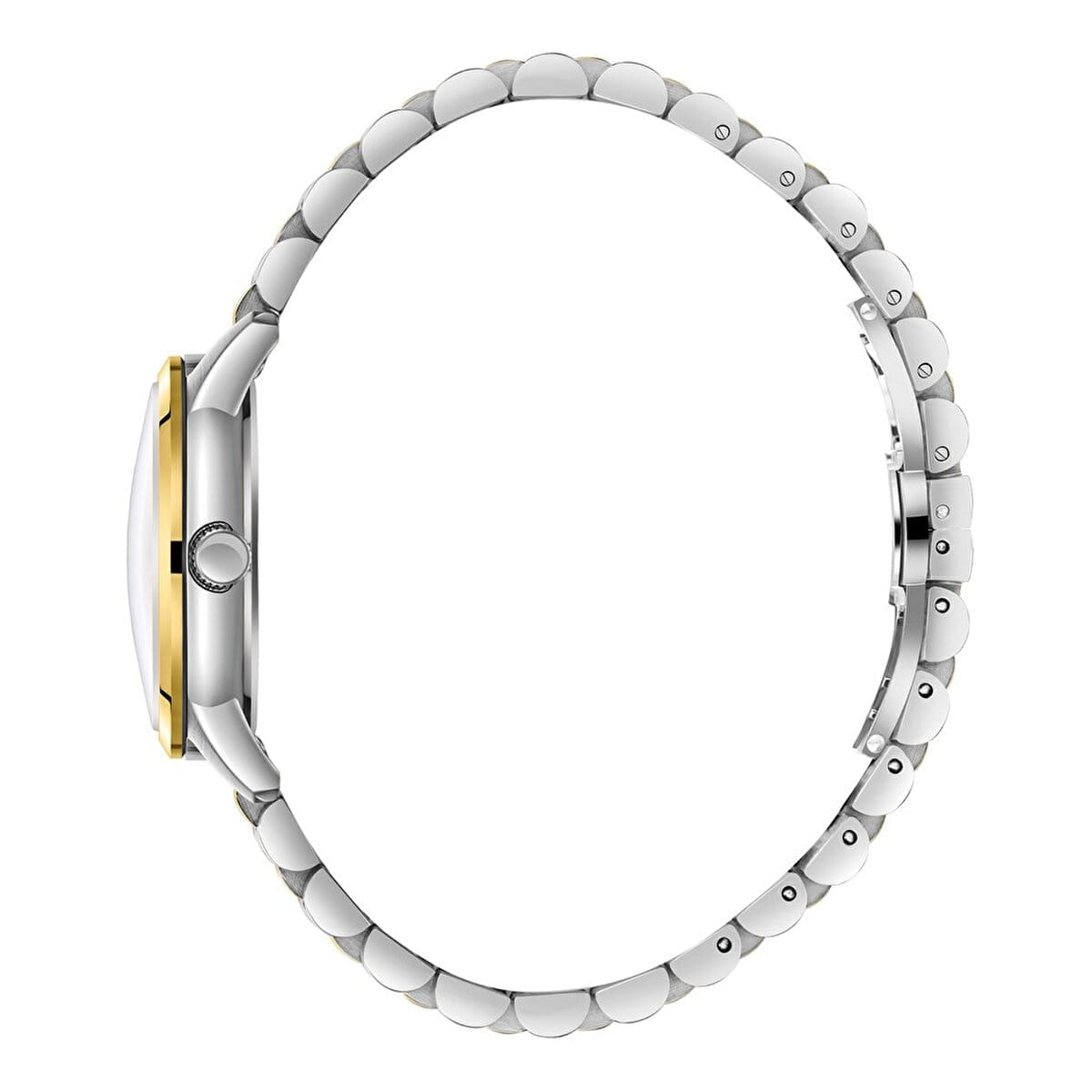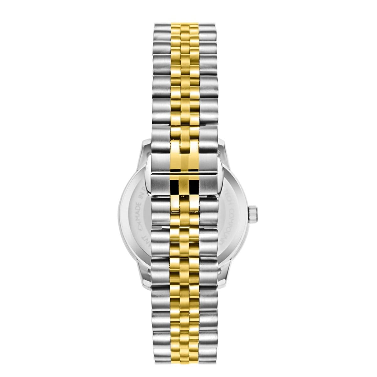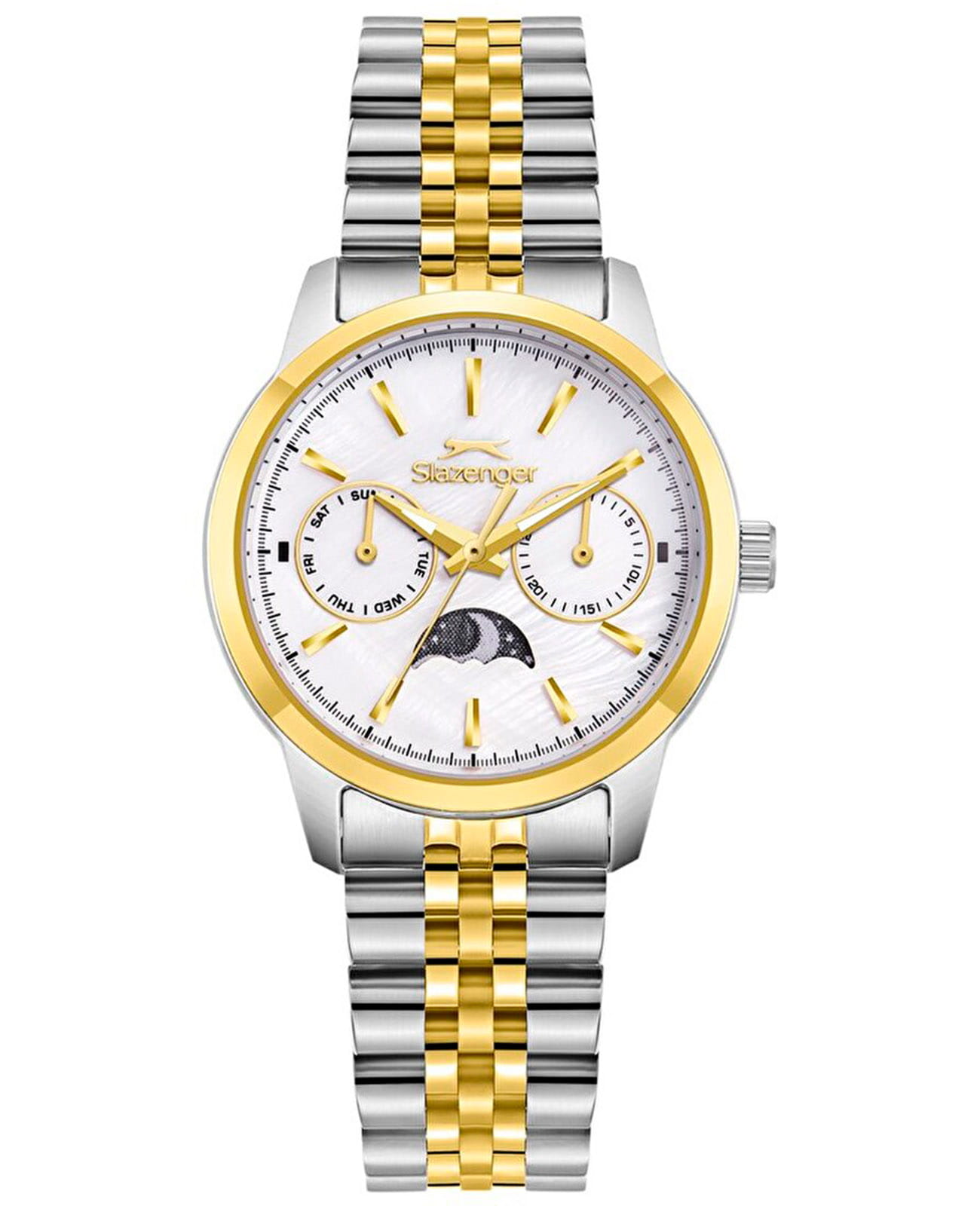 Женские кварцевые часы Slazenger — это выразительный и функциональный аксессуар. Корпус диаметром 33 мм и толщиной 10 мм выполнен из суперметалла. БезельБезельВнешний ободок, закрепляющий стекло. В спортивных часах так называется поворотное кольцо с делениями на циферблате, выполняет роль таймера – замеряет отрезки времени на шкале. Неподвижный безель – элемент декора. Однонаправленно вращающийся безель на дайверских часах позволяет фиксировать моменты погружения и выныривания на поверхность. из суперметалла с IP-покрытиемIP-покрытиеМетод ионного напыления. Демонстрирует повышенную устойчивость к истиранию, окислению и химическим веществам. Под воздействием высокого давления и температуры около 1500°C молекулы металла надёжно соединяются с частицами корпуса часов.. Циферблат белого цвета оформлен индексами и стрелками. Циферблат защищён минеральным стекломМинеральное стеклоМинеральное стекло представляет собой искусственно выращенный минерал кварца. Такое стекло отличается особой устойчивостью к повреждениям и царапинам. Уступает по некоторым качествам сапфировому стеклу.. Механизм — кварцевый калибр VX3HE11. Часы оснащены индикацией дня недели, даты и индикатором день/ночь, отображающим солнце или луну в зависимости от времени суток. Часы оснащены браслетом из суперметалла с IP-покрытиемIP-покрытиеМетод ионного напыления. Демонстрирует повышенную устойчивость к истиранию, окислению и химическим веществам. Под воздействием высокого давления и температуры около 1500°C молекулы металла надёжно соединяются с частицами корпуса часов. на застёжке «бабочка» с кнопкамиЗастёжка "бабочка"Такой вид застёжки дополняется предохранителями, помогающими избежать случайного раскрытия браслета. Обладают изящным исполнением. . Водонепроницаемость 50 м позволяет использовать часы в повседневных условиях. Гарантия — 12 месяцев. Идеальный выбор для тех, кто ценит стиль, функциональность и качество.