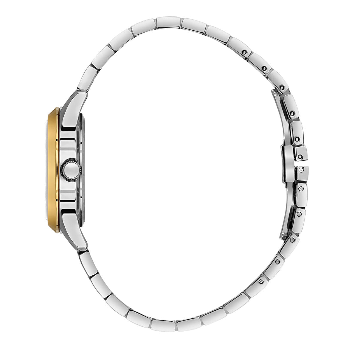 Женские кварцевые часы Slazenger — это элегантный аксессуар. Корпус диаметром 32 мм и толщиной 10 мм выполнен из нержавеющей стали 316L. БезельБезельВнешний ободок, закрепляющий стекло. В спортивных часах так называется поворотное кольцо с делениями на циферблате, выполняет роль таймера – замеряет отрезки времени на шкале. Неподвижный безель – элемент декора. Однонаправленно вращающийся безель на дайверских часах позволяет фиксировать моменты погружения и выныривания на поверхность. с IP-покрытиемIP-покрытиеМетод ионного напыления. Демонстрирует повышенную устойчивость к истиранию, окислению и химическим веществам. Под воздействием высокого давления и температуры около 1500°C молекулы металла надёжно соединяются с частицами корпуса часов.. Циферблат белого цвета с перламутровыми вставками оформлен индексами в виде фианитов. Циферблат защищён минеральным стекломМинеральное стеклоМинеральное стекло представляет собой искусственно выращенный минерал кварца. Такое стекло отличается особой устойчивостью к повреждениям и царапинам. Уступает по некоторым качествам сапфировому стеклу.. Механизм — кварцевый. Окошко даты расположено в положении 3 часов. Часы оснащены стальным браслетом с IP-покрытиемIP-покрытиеМетод ионного напыления. Демонстрирует повышенную устойчивость к истиранию, окислению и химическим веществам. Под воздействием высокого давления и температуры около 1500°C молекулы металла надёжно соединяются с частицами корпуса часов. и раскладной застёжкойРаскладная застёжкаТакой тип застёжки используется только на браслетах из металла. Она никогда не раскрывается полностью, происходит разделение на 2 и более частей. Раскладывающая застёжка снизит вероятность потери часов к минимуму.. Водонепроницаемость 50 м позволяет использовать часы в повседневных условиях. Гарантия — 12 месяцев. Идеальный выбор для тех, кто ценит стиль и качество.