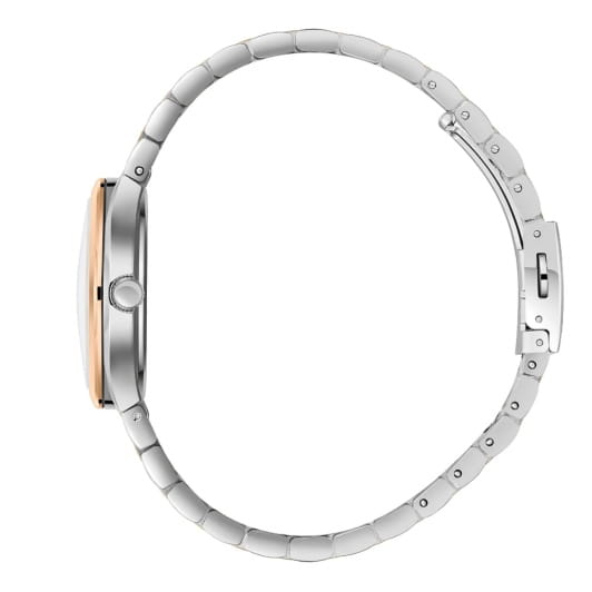 Женские кварцевые часы Slazenger — это выразительный и функциональный аксессуар. Корпус диаметром 34 мм и толщиной 9,5 мм выполнен из суперметалла. БезельБезельВнешний ободок, закрепляющий стекло. В спортивных часах так называется поворотное кольцо с делениями на циферблате, выполняет роль таймера – замеряет отрезки времени на шкале. Неподвижный безель – элемент декора. Однонаправленно вращающийся безель на дайверских часах позволяет фиксировать моменты погружения и выныривания на поверхность. из суперметалла с IP-покрытиемIP-покрытиеМетод ионного напыления. Демонстрирует повышенную устойчивость к истиранию, окислению и химическим веществам. Под воздействием высокого давления и температуры около 1500°C молекулы металла надёжно соединяются с частицами корпуса часов.. Циферблат серебристого цвета оформлен индексами и стрелками. Циферблат защищён минеральным стекломМинеральное стеклоМинеральное стекло представляет собой искусственно выращенный минерал кварца. Такое стекло отличается особой устойчивостью к повреждениям и царапинам. Уступает по некоторым качествам сапфировому стеклу.. Механизм — кварцевый калибр VX3HE11. Часы оснащены индикацией дня недели, даты и индикатором день/ночь, отображающим солнце или луну в зависимости от времени суток. Часы оснащены браслетом из суперметалла с IP-покрытиемIP-покрытиеМетод ионного напыления. Демонстрирует повышенную устойчивость к истиранию, окислению и химическим веществам. Под воздействием высокого давления и температуры около 1500°C молекулы металла надёжно соединяются с частицами корпуса часов. и раскладной застёжкойРаскладная застёжкаТакой тип застёжки используется только на браслетах из металла. Она никогда не раскрывается полностью, происходит разделение на 2 и более частей. Раскладывающая застёжка снизит вероятность потери часов к минимуму.. Водонепроницаемость 50 м позволяет использовать часы в повседневных условиях. Гарантия — 12 месяцев. Идеальный выбор для тех, кто ценит стиль, функциональность и качество.