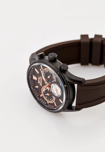 Мужские кварцевые часы Slazenger — это выразительный и функциональный аксессуар. Корпус диаметром 46 мм и толщиной 12 мм выполнен из суперметалла с IP-покрытиемIP-покрытиеМетод ионного напыления. Демонстрирует повышенную устойчивость к истиранию, окислению и химическим веществам. Под воздействием высокого давления и температуры около 1500°C молекулы металла надёжно соединяются с частицами корпуса часов.. Циферблат чёрного цвета оформлен индексами, стрелками и тремя вынесенными субциферблатами: для отображения дня недели, даты и 24-часового формата времени. Стрелки с люминесцентным покрытиемЛюминесцентное покрытиеПозволяет считывать показания времени в темноте. Производители наносят на стрелки, часовые индексы, безель или поверхность циферблата светонакопительный состав, дающий холодное свечение., обеспечивающим читаемость в темноте. Циферблат защищён минеральным стекломМинеральное стеклоМинеральное стекло представляет собой искусственно выращенный минерал кварца. Такое стекло отличается особой устойчивостью к повреждениям и царапинам. Уступает по некоторым качествам сапфировому стеклу.. Часы оснащены силиконовым ремешком на классической пряжке. Водонепроницаемость 30 м позволяет использовать часы в повседневных условиях. Идеальный выбор для тех, кто ценит стиль и качество.