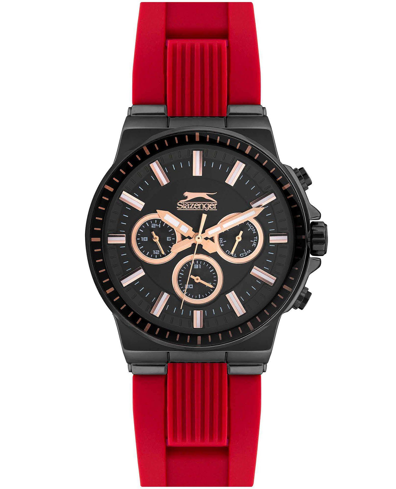 Мужские кварцевые часы Slazenger — это выразительный и функциональный аксессуар. Корпус диаметром 45 мм и толщиной 11 мм выполнен из суперметалла с IP-покрытиемIP-покрытиеМетод ионного напыления. Демонстрирует повышенную устойчивость к истиранию, окислению и химическим веществам. Под воздействием высокого давления и температуры около 1500°C молекулы металла надёжно соединяются с частицами корпуса часов.. Циферблат чёрного цвета оформлен индексами, стрелками и тремя вынесенными субциферблатами: для отображения дня недели, даты и 24-часового формата времени. Циферблат защищён минеральным стекломМинеральное стеклоМинеральное стекло представляет собой искусственно выращенный минерал кварца. Такое стекло отличается особой устойчивостью к повреждениям и царапинам. Уступает по некоторым качествам сапфировому стеклу.. Часы оснащены силиконовым ремешком на классической пряжке. Водонепроницаемость 50 м позволяет использовать часы в повседневных условиях. Идеальный выбор для тех, кто ценит стиль и качество.