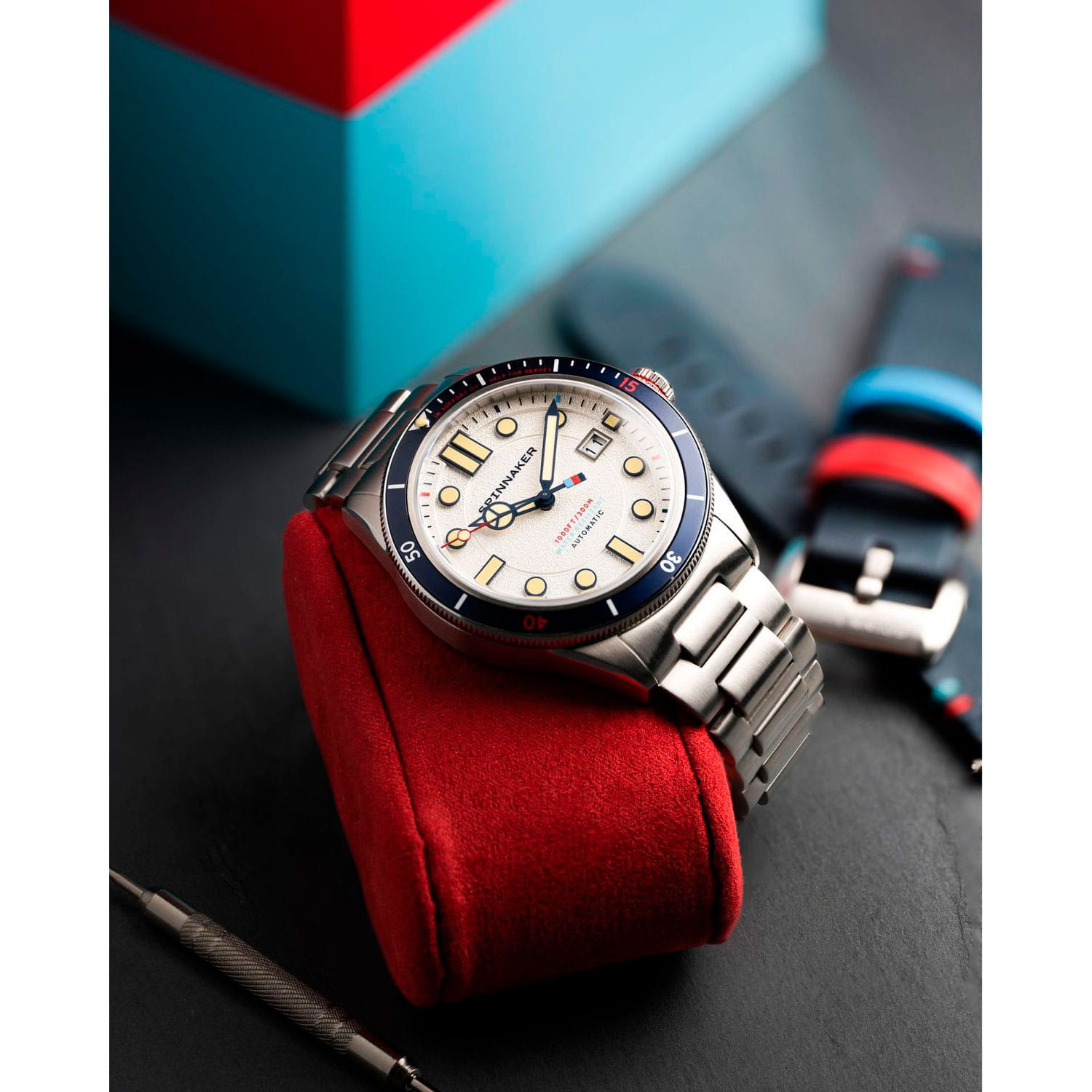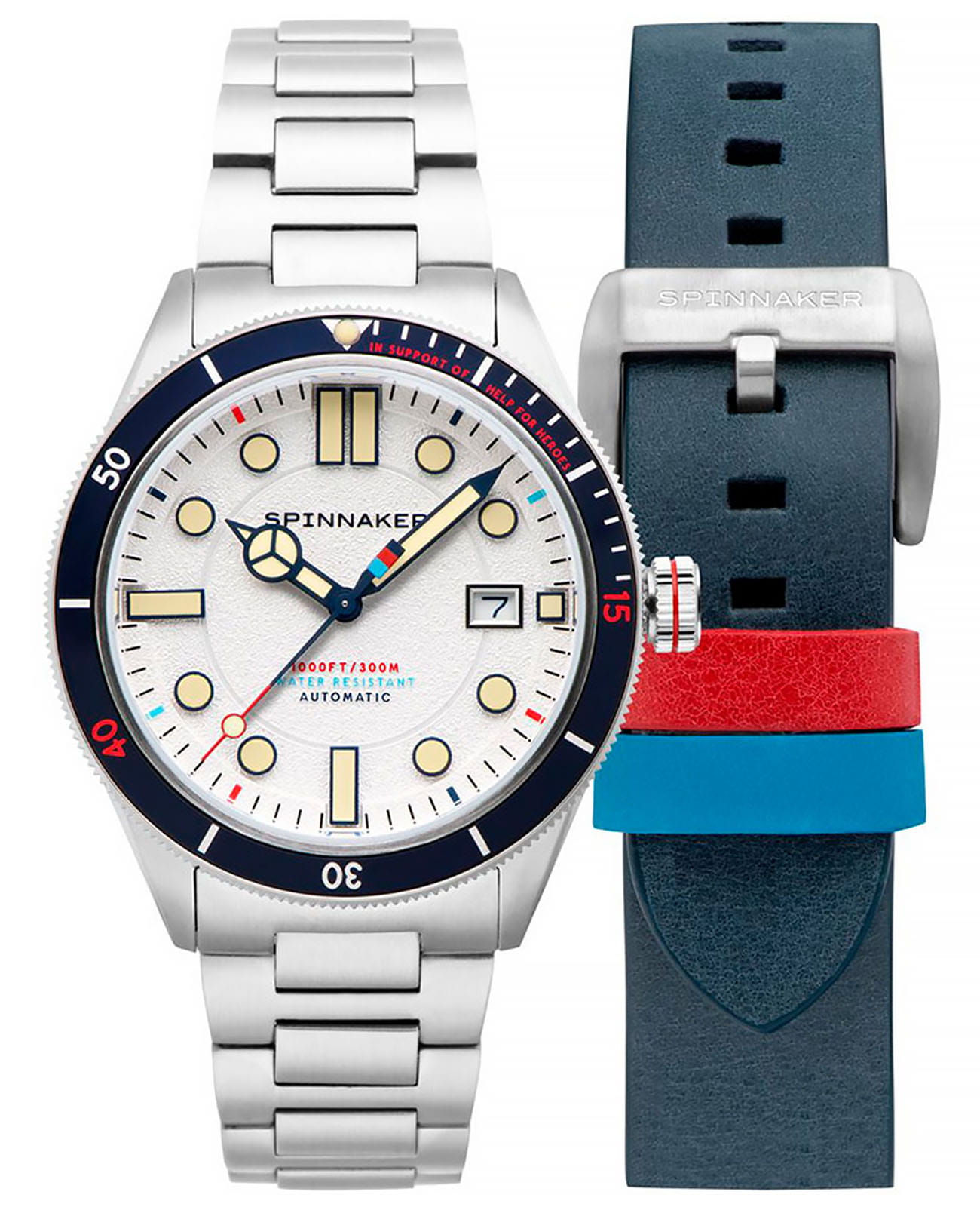 Мужские итальянские часы с автоподзаводом Spinnaker Cahill SP-5096-33, механический механизм (автоматический калибр) с высокой точностью. Циферблат с люминесцентным покрытиемЛюминесцентное покрытиеПозволяет считывать показания времени в темноте. Производители наносят на стрелки, часовые индексы, безель или поверхность циферблата светонакопительный состав, дающий холодное свечение. стрелок и меток дополнен сапфировым стекломСапфировое стеклоПрочный и надёжный материал из кристалла сапфира синтетического происхождения, характеризующийся особой твёрдостью и устойчивостью к царапинам и повреждениям., устойчивым к появлению царапин и обладающее высокой прозрачностью. Класс водозащиты: 300 метров, позволит плавать, нырять и заниматься другими водными видами спорта. Корпус часов изготовлен из стали. Стальной браслет на раскладной застёжкеРаскладная застёжкаТакой тип застёжки используется только на браслетах из металла. Она никогда не раскрывается полностью, происходит разделение на 2 и более частей. Раскладывающая застёжка снизит вероятность потери часов к минимуму.. БезельБезельВнешний ободок, закрепляющий стекло. В спортивных часах так называется поворотное кольцо с делениями на циферблате, выполняет роль таймера – замеряет отрезки времени на шкале. Неподвижный безель – элемент декора. Однонаправленно вращающийся безель на дайверских часах позволяет фиксировать моменты погружения и выныривания на поверхность. с PVD-покрытиемPVDУльтратонкое покрытие наносится в технике вакуумного напыления, сочетает в себе нитрид титана особой прочности со слоем золота или оксида хрома. Несёт в себе декоративную или защитную функцию.. Окошко даты находятся в положении 3 часа. Сменный ремешок в комплекте.