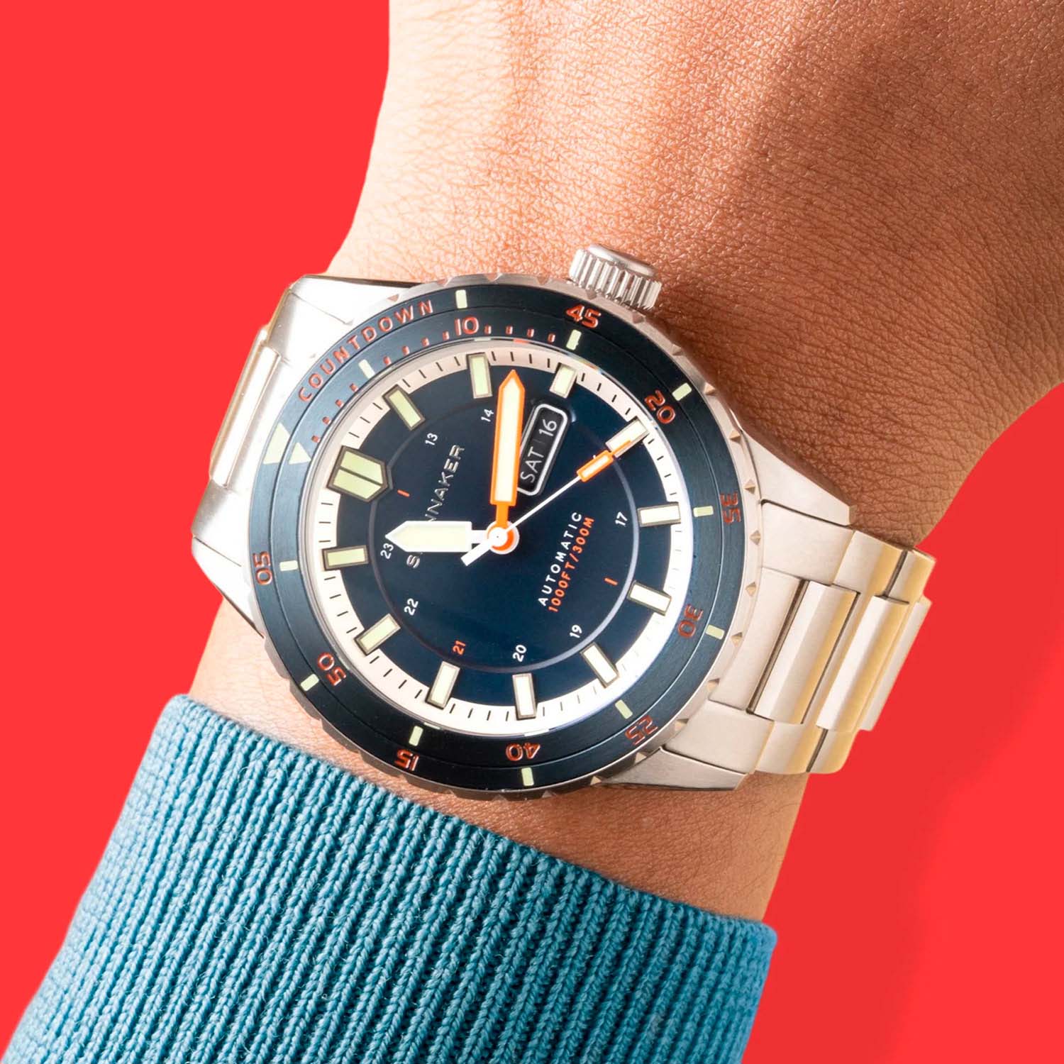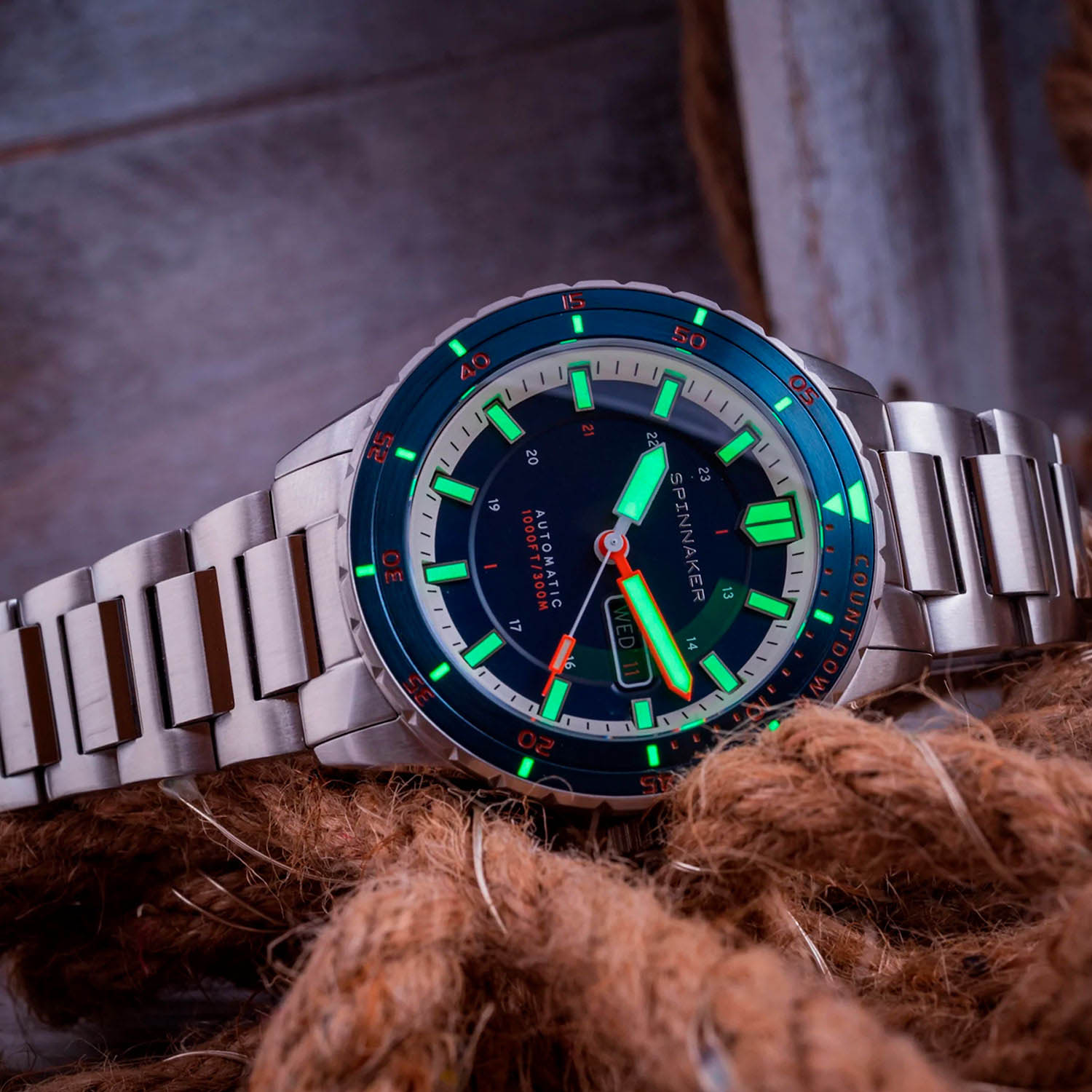 Мужские итальянские часы Spinnaker Hass SP-5099-44 с надёжным автоматическим механизмом. Сапфировое стеклоСапфировое стеклоПрочный и надёжный материал из кристалла сапфира синтетического происхождения, характеризующийся особой твёрдостью и устойчивостью к царапинам и повреждениям. с антибликовым покрытиемАнтибликовое покрытиеСлой оксида металла в 0,13-0,3 микрон, благодаря которому стекло часов не бликует и не отражает свет. Антибликовое покрытие уменьшает отражение света в 10 раз, обеспечивая отличную читаемость показателей циферблата., устойчивое к появлению царапин и обладающее высокой прозрачностью. Класс водозащиты: 300 метров, позволит плавать, нырять и заниматься другими водными видами спорта. Корпус часов изготовлен из нержавеющей стали с поворотным безелемБезельВнешний ободок, закрепляющий стекло. В спортивных часах так называется поворотное кольцо с делениями на циферблате, выполняет роль таймера – замеряет отрезки времени на шкале. Неподвижный безель – элемент декора. Однонаправленно вращающийся безель на дайверских часах позволяет фиксировать моменты погружения и выныривания на поверхность. с IP-покрытиемIP-покрытиеМетод ионного напыления. Демонстрирует повышенную устойчивость к истиранию, окислению и химическим веществам. Под воздействием высокого давления и температуры около 1500°C молекулы металла надёжно соединяются с частицами корпуса часов.. Браслет выполнен из нержавеющей стали на раскладной застёжкеРаскладная застёжкаТакой тип застёжки используется только на браслетах из металла. Она никогда не раскрывается полностью, происходит разделение на 2 и более частей. Раскладывающая застёжка снизит вероятность потери часов к минимуму.. Стрелки и метки с люминесцентным покрытиемЛюминесцентное покрытиеПозволяет считывать показания времени в темноте. Производители наносят на стрелки, часовые индексы, безель или поверхность циферблата светонакопительный состав, дающий холодное свечение.. Окошко дня недели и даты находится в положении 3 часа.