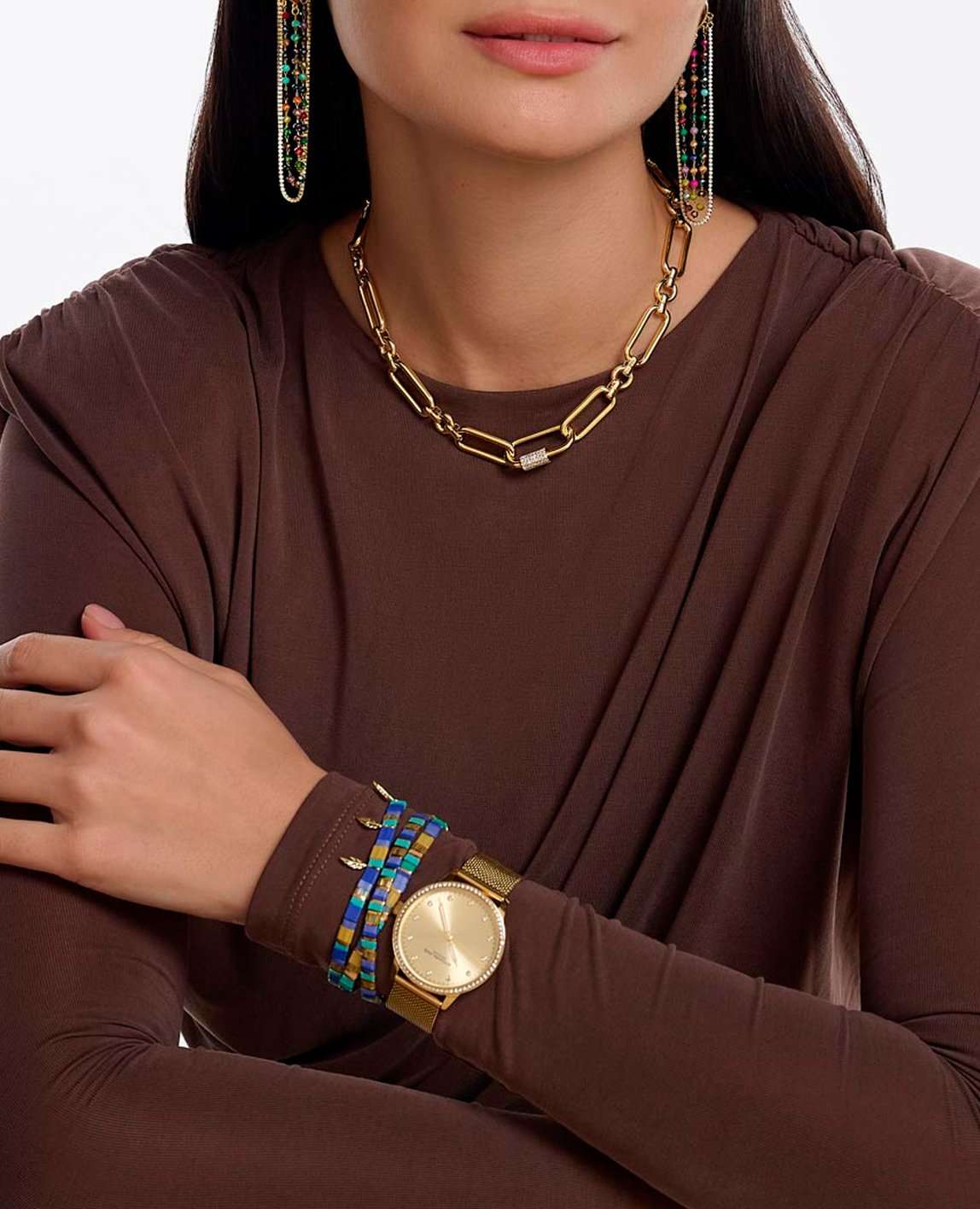 Женские наручные часы Stührling Original 3904.3 — это элегантная модель, сочетающая классический дизайн и современные технологии . Часы относятся к категории dress watch (деловые часы), что делает их идеальным выбором для повседневного использования или особых случаев. Корпус часов диаметром 38 мм изготовлен из высококачественной нержавеющей стали с PVD-покрытиемPVDУльтратонкое покрытие наносится в технике вакуумного напыления, сочетает в себе нитрид титана особой прочности со слоем золота или оксида хрома. Несёт в себе декоративную или защитную функцию., что подчеркивает элегантность модели, что обеспечивает надежность и устойчивость к внешним воздействиям . Толщина корпуса составляет всего 8,25 мм, что делает модель изящной и комфортной для ношения . Защиту циферблата обеспечивает прочное стекло KrysternaKrysternaKrysterna — инновационное стекло для наручных часов. Благодаря уникальной структуре, Krysterna объединяет ключевые преимущества двух материалов: твердость сапфира, защищающую от царапин, и гибкость минерального стекла, обеспечивающую устойчивость к деформациям. Такая комбинация делает его идеальным решением для часов, подверженных экстремальным нагрузкам, сохраняя при этом оптическую прозрачность., известное своей устойчивостью к царапинам и механическим повреждениям. Браслет миланского плетения из того же матеариала на раскладном замкеРаскладной замокДанный вариант застежки используется только на часах с металлическим браслетом. Отличительная особенность такого крепления в том, что длина браслета становится универсальной и вы можете самостоятельно отрегулировать нужный вам размер – застежка просто двигается по браслету часов.. Часы оснащены кварцевым механизмом, обеспечивающим точность хода без необходимости ручного завода. Эта модель станет стильным аксессуаром для женщин, ценящих элегантность и практичность в повседневной жизни .