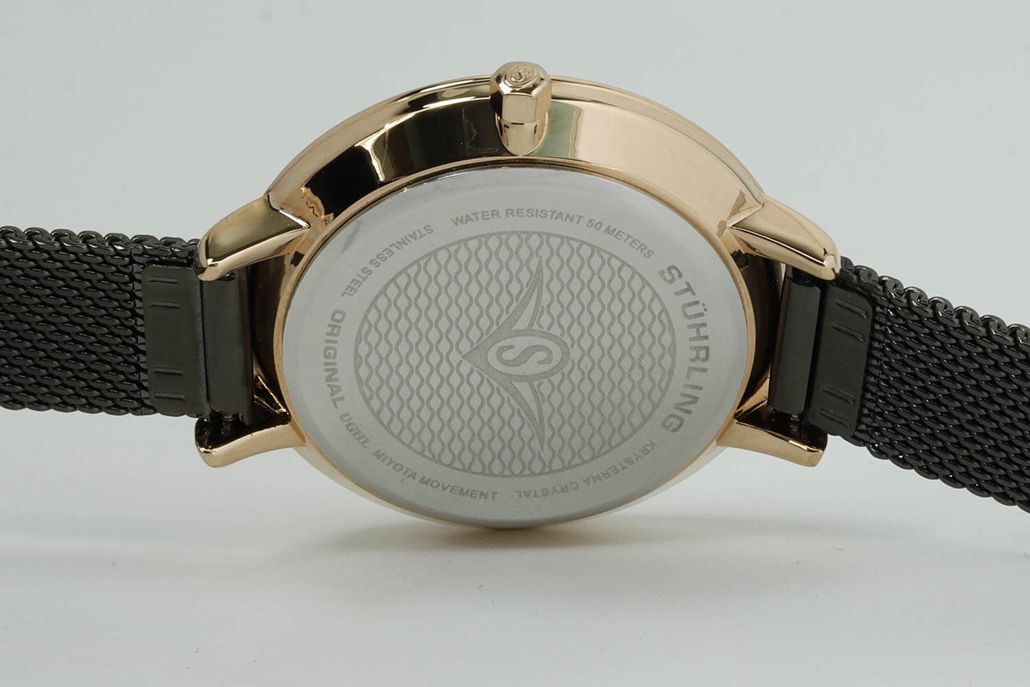 Stuhrling 3946.4 — элегантные женские часы, объединяющие строгую классику и современную функциональность. Корпус из нержавеющей стали с PVD-покрытиемPVDУльтратонкое покрытие наносится в технике вакуумного напыления, сочетает в себе нитрид титана особой прочности со слоем золота или оксида хрома. Несёт в себе декоративную или защитную функцию. создают ощущение монолитной надёжности, а глубокий циферблат украшенный кристаллом придаёт модели выразительность и характер. Стальной браслет миланского плетения с PVD-покрытиемPVDУльтратонкое покрытие наносится в технике вакуумного напыления, сочетает в себе нитрид титана особой прочности со слоем золота или оксида хрома. Несёт в себе декоративную или защитную функцию. на раскладном замкеРаскладной замокДанный вариант застежки используется только на часах с металлическим браслетом. Отличительная особенность такого крепления в том, что длина браслета становится универсальной и вы можете самостоятельно отрегулировать нужный вам размер – застежка просто двигается по браслету часов.. Прочное стекло KrysternaKrysternaKrysterna — инновационное стекло для наручных часов. Благодаря уникальной структуре, Krysterna объединяет ключевые преимущества двух материалов: твердость сапфира, защищающую от царапин, и гибкость минерального стекла, обеспечивающую устойчивость к деформациям. Такая комбинация делает его идеальным решением для часов, подверженных экстремальным нагрузкам, сохраняя при этом оптическую прозрачность. защищает циферблат от царапин, а надёжный кварцевый механизм гарантирует стабильную точность. Stuhrling — выбор уверенной девушки, ценящей сочетание функциональности, лаконичного дизайна и безупречной отделки.