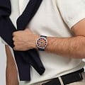 Часы Swatch SB07S114 — это стильный и современный аксессуар для тех, кто ценит лёгкость и комфорт. Часы идеально подойдут как для мужчин, так и для женщин. Эти крупные темно-синие часы с оранжевым и серебристым принтом на открытом циферблате заключены в матированный стальной корпус. Отсчет времени ведут синие часовая и минутная стрелки, светящиеся в темноте благодаря люминесцентному покрытиюЛюминесцентное покрытиеПозволяет считывать показания времени в темноте. Производители наносят на стрелки, часовые индексы, безель или поверхность циферблата светонакопительный состав, дающий холодное свечение., а также белая секундная стрелка. Темно-синий ремешок с оранжевым и синим тренчиками и стальной полупряжкой прекрасно дополняет модель. Водозащита 30 метров делает часы практичными для повседневного использования. Эти часы подойдут для повседневного ношения и станут ярким акцентом в вашем наряде.
