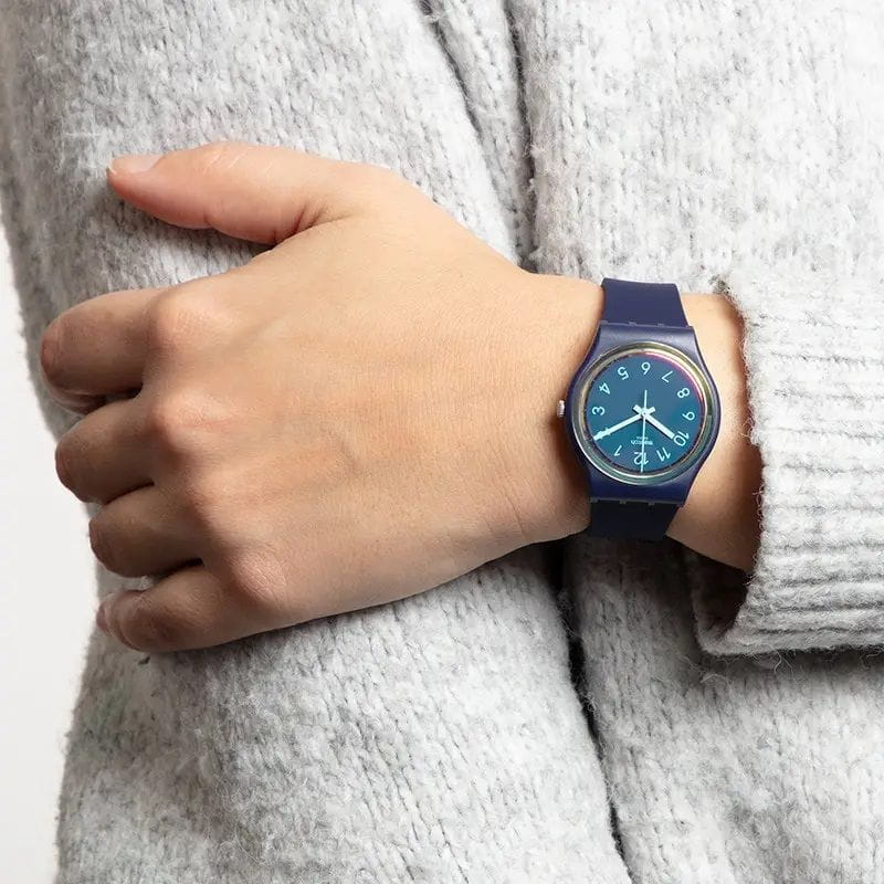 Часы Swatch  SO28N110 — это стильный и современный аксессуар, который идеально подходит для повседневного ношения. Они имеют классический дизайн корпуса и необычный цвет стекла. Корпус часов выполнен из высококачественного темно-синего  биоматериала, что делает их легкими и удобными. Циферблат украшен арабскими цифрами и покрыт стеклом с эффектом солнечного спектра. Стекло часов изготовлено из прочного хезалита, который устойчив к царапинам и ударам, что гарантирует долговечность изделия. Ремешок часов  выполнен из биоматериала и имеет регулируемую длину, что позволяет удобно носить их на запястье. Внутри часов установлен надежный кварцевый механизм, который обеспечивает точность хода. Эти часы водонепроницаемы до 30 метров, что позволяет не беспокоиться о случайных брызгах или дождевых каплях. Swatch SO28N110 — это идеальный выбор для тех, кто ценит сочетание стиля, комфорта и функциональности в одном аксессуаре.
