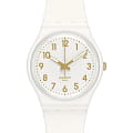 Часы Swatch  SO28W106 — это стильный и современный аксессуар, который идеально подходит для повседневного ношения. Часы имеют белый корпус из биоматериала и белый циферблат с золотистыми цифрами. Стрелки со светящимися в темноте кончиками с люминесцентным покрытиемЛюминесцентное покрытиеПозволяет считывать показания времени в темноте. Производители наносят на стрелки, часовые индексы, безель или поверхность циферблата светонакопительный состав, дающий холодное свечение. помогают ориентироваться в темноте. Стекло часов изготовлено из прочного полимера, устойчивого к царапинам и ударам. Ремешок часов  выполнен из силикона и имеет регулируемую длину, на классической застежке. Внутри часов установлен надежный кварцевый механизм, который обеспечивает точность хода. Эти часы водонепроницаемы до 30 метров, что позволяет не беспокоиться о случайных брызгах или дождевых каплях. Swatch SO28W106 — это идеальный выбор для тех, кто ценит сочетание стиля, комфорта и функциональности в одном аксессуаре.
