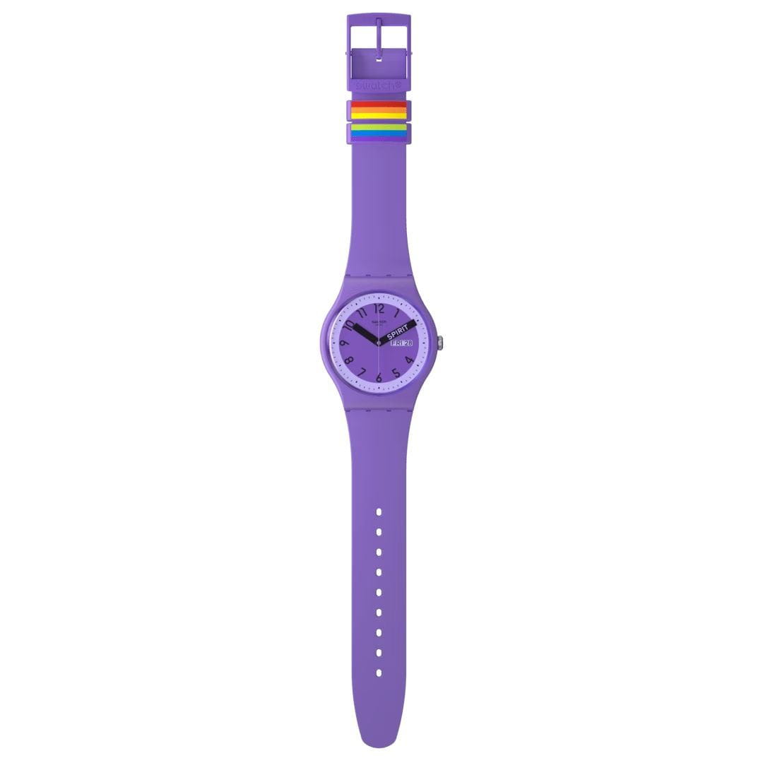 Часы Swatch SO29V700 — стильный и надежный аксессуар. Эти часы Swatch Pride 2023 Special имеют фиолетовый циферблат и фиолетовое стекло из биоматериала в корпусе из тех же материалов. Часовая и минутная стрелки черные, при этом минутная стрелка символизирует значение фиолетового цвета в флаге Прайда: дух. Соответствующий ремешок этих фиолетовых часов включает две петли, которые, соединяясь, образуют радугу. Окошко даты и дня недели расположены на 3 часа. Ремешок силиконовый на классической застежке. Внутри часов установлен надежный кварцевый механизм, который обеспечивает точность хода. Эти часы водонепроницаемы до 30 метров, что позволяет не беспокоиться о случайных брызгах или дождевых каплях. Swatch SSO29V700 — это идеальный выбор для тех, кто ценит сочетание стиля, комфорта и функциональности в одном аксессуаре.
