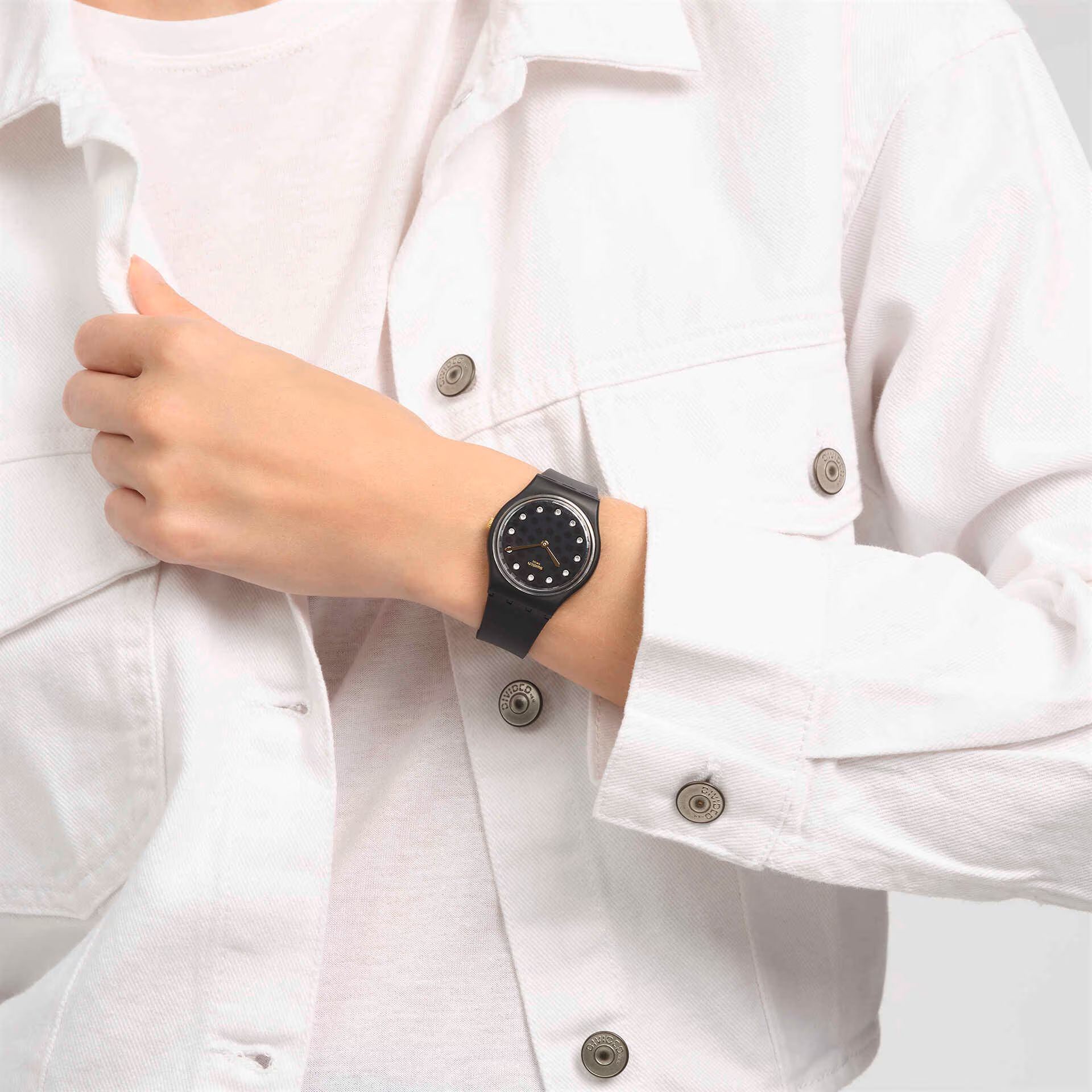 Часы Swatch SO31B102 — стильный и удобный аксессуар. Кварцевые часы с корпусом из биокерамики. Черные часы, декорированные 12 кристаллами вместо индексов и золотистыми стрелками. Ремешок силиконовый на стандартной застёжке. Внутри часов установлен надежный кварцевый механизм, который обеспечивает точность хода. Эти часы водонепроницаемы до 30 метров, что позволяет не беспокоиться о случайных брызгах или дождевых каплях. Swatch SO31B102 — это идеальный выбор для тех, кто ценит сочетание стиля, комфорта и функциональности в одном аксессуаре.