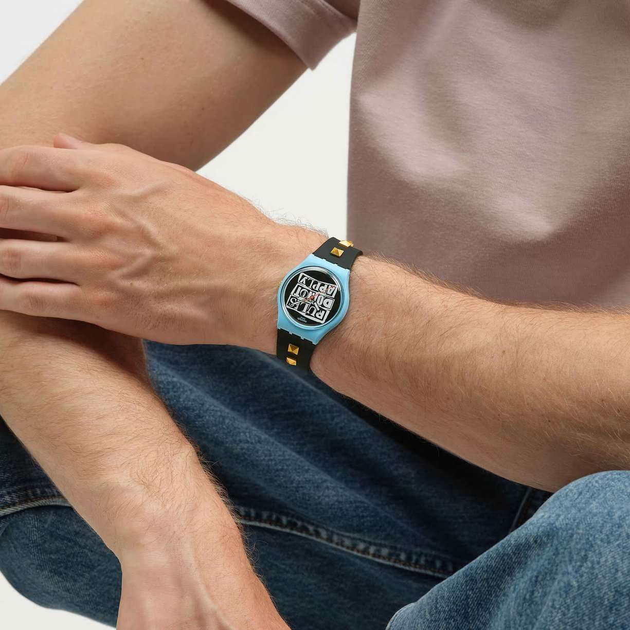 Мужские наручные часы Swatch BROKEN RULES SO31L101 — это стильный и современный аксессуар для тех, кто ценит лёгкость и комфорт. На черном циферблате этих часов размещен броский белый принт с надписью: «Rules do not apply» («Правила ни к чему»). Корпус выполнен из биокерамики,  диаметром 34 мм и толщиной 8.75 мм, что обеспечивает долговечность и утончённый внешний вид. Циферблат защищён органическим стеклом, устойчивым к повреждениям. Модель оснащена кварцевым механизмом, обеспечивающим высокую точность хода. Стрелки с люминесцентным покрытиемЛюминесцентное покрытиеПозволяет считывать показания времени в темноте. Производители наносят на стрелки, часовые индексы, безель или поверхность циферблата светонакопительный состав, дающий холодное свечение.. Силиконовый ремешок на стандартной застёжке гармонично дополняет корпус и обеспечивает комфортное ношение. Водозащита 30 метров позволит защитить корпус от случайных брызг или капель дождя. Эти часы подойдут для повседневного ношения и станут ярким акцентом в вашем наряде.