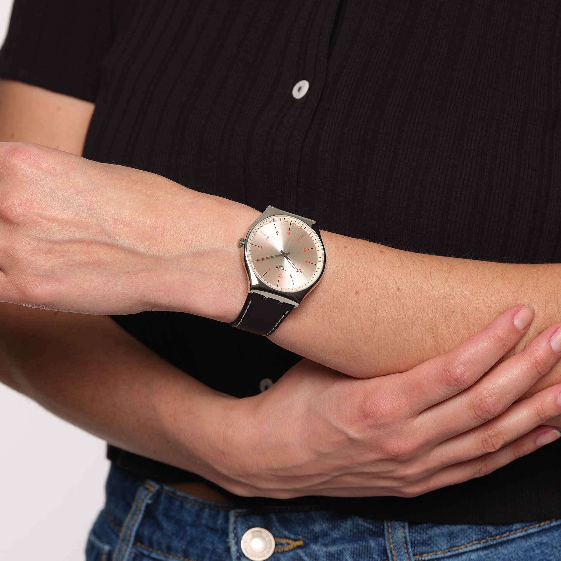 Часы Swatch SS07S118 — это стильный и современный аксессуар для тех, кто ценит лёгкость и комфорт. Часы идеально подойдут как для мужчин, так и для женщин. Корпус и пряжка этой модели часов выполнены из полированной нержавеющей стали, а черный кожаный ремешок эффектно дополнен бежевой строчкой. Разноцветный циферблат с радиальной полировкой и стрелки цвета розового золота добавляют этим часам особую пикантность. Водозащита 30 метров делает часы практичными для повседневного использования. Эти часы подойдут для повседневного ношения и станут ярким акцентом в вашем наряде.