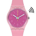 Часы Swatch SVHP101-5300 — это стильный и современный аксессуар для тех, кто ценит лёгкость и комфорт. Часы идеально подойдут как для мужчин, так и для женщин. Эти часы имеют NFC модуль, поэтому это несомненно лучший способ оплачивать покупки. Красивая нежно-розовая модель имеет прозрачный ярко-розовый циферблат с разноцветным принтом и элементами, особенно выделяются голубые стрелки, светящиеся в темноте благодаря люминесцентному покрытиюЛюминесцентное покрытиеПозволяет считывать показания времени в темноте. Производители наносят на стрелки, часовые индексы, безель или поверхность циферблата светонакопительный состав, дающий холодное свечение.. Водозащита 30 метров делает часы практичными для повседневного использования. Эти часы подойдут для повседневного ношения и станут ярким акцентом в вашем наряде.