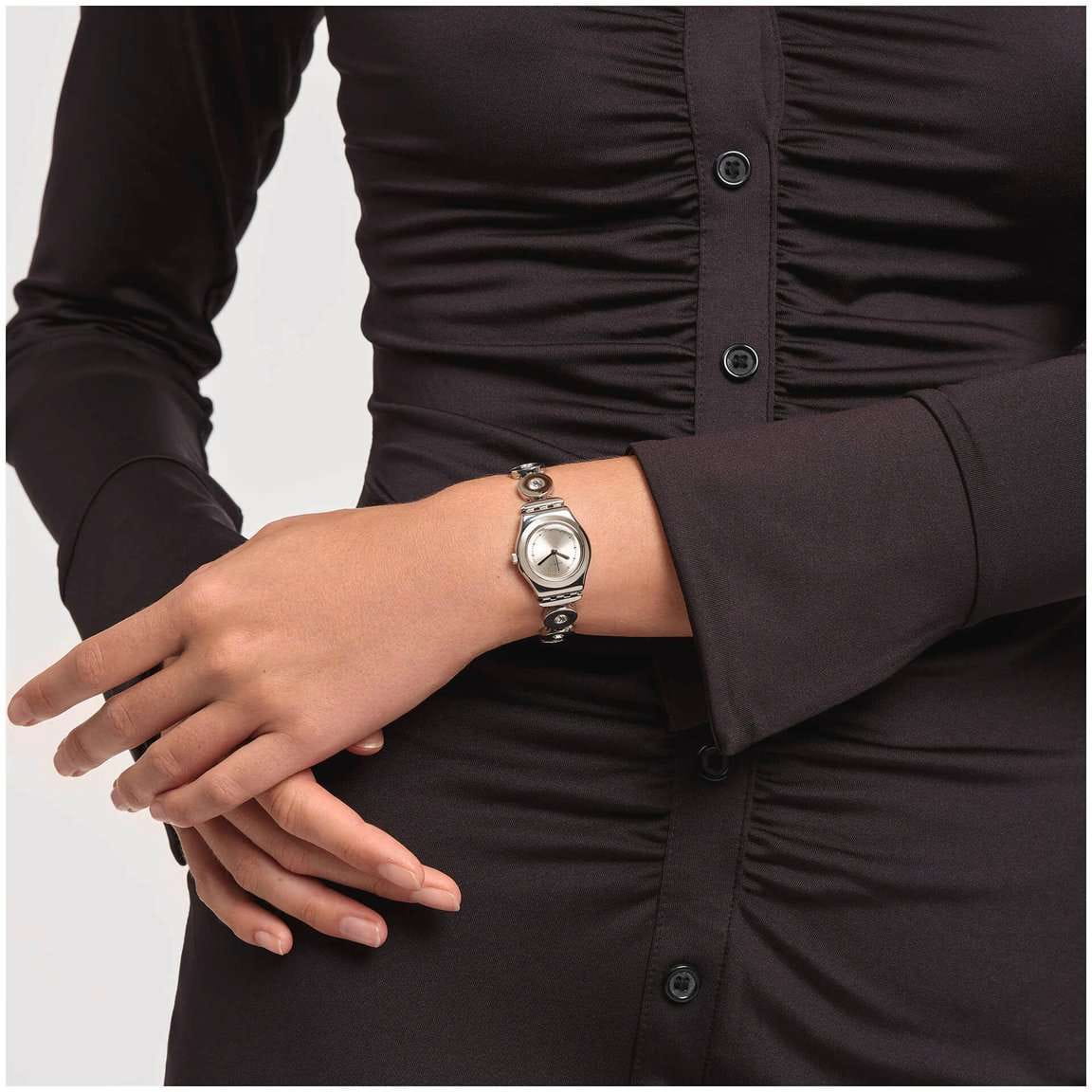 Часы Swatch YSS317G — это стильный и современный аксессуар для тех, кто ценит лёгкость и комфорт. Впечатляющая модель этих часов вдохновляет изящным серебристым циферблатом с радиальной полировкой, украшенным черным принтом и золотистыми вкраплениями. Корпус идеально гармонируют с регулируемым браслетом из нержавеющей стали, инкрустированным сверкающими прозрачными кристаллами. Водозащита 30 метров делает часы практичными для повседневного использования. Эти часы подойдут для повседневного ношения и станут ярким акцентом в вашем наряде.