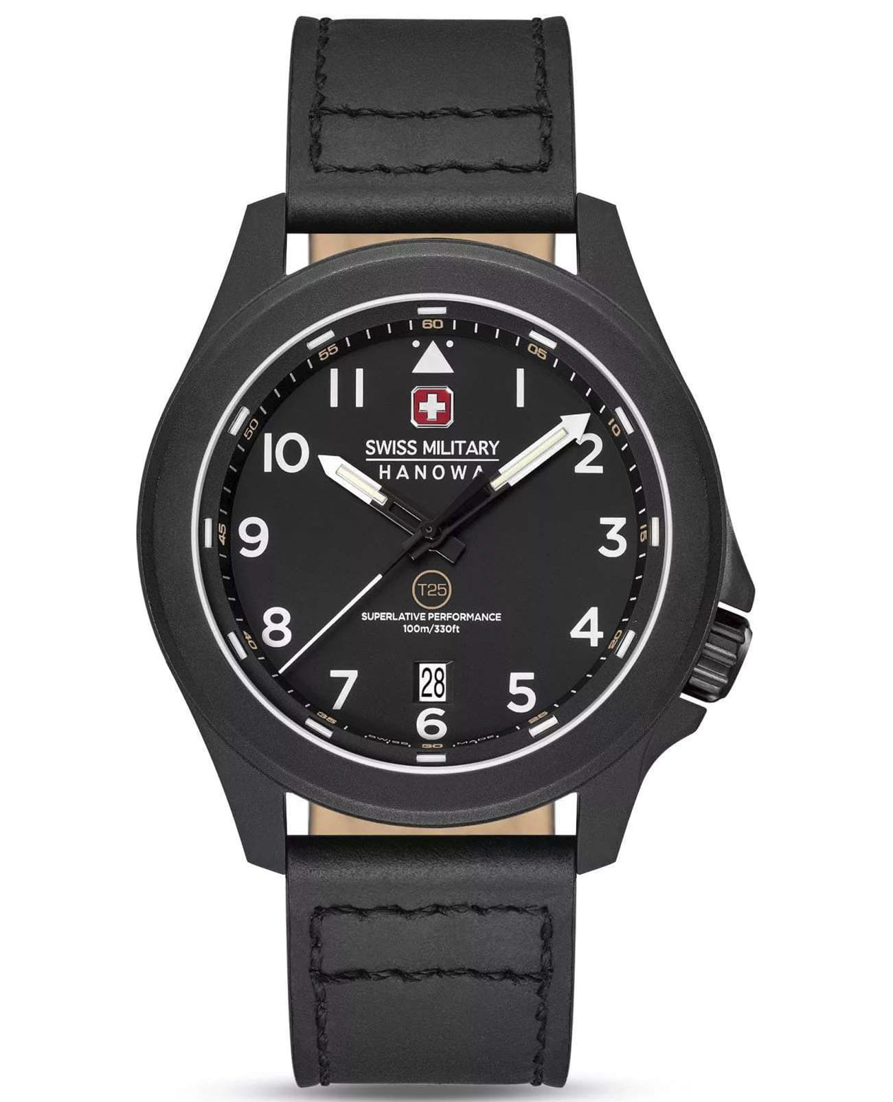 Мужские кварцевые часы Swiss Military Hanowa — это прочный и стильный аксессуар, вдохновлённый классическими полевыми моделями. Корпус диаметром 42 мм выполнен из нержавеющей стали с PVD-покрытиемPVDУльтратонкое покрытие наносится в технике вакуумного напыления, сочетает в себе нитрид титана особой прочности со слоем золота или оксида хрома. Несёт в себе декоративную или защитную функцию.. Циферблат чёрного цвета оформлен индексами и стрелками. Циферблат защищён сапфировым стекломСапфировое стеклоПрочный и надёжный материал из кристалла сапфира синтетического происхождения, характеризующийся особой твёрдостью и устойчивостью к царапинам и повреждениям.. Механизм — швейцарское кварцевое движение Ronda 515 (Swiss Made). Часы оснащены чёрным кожаным ремешком с матовой текстурой на классической пряжке. Водонепроницаемость 100 м позволяет использовать часы для плавания и повседневного ношения. Идеальный выбор для тех, кто ценит швейцарское качество и надёжность.