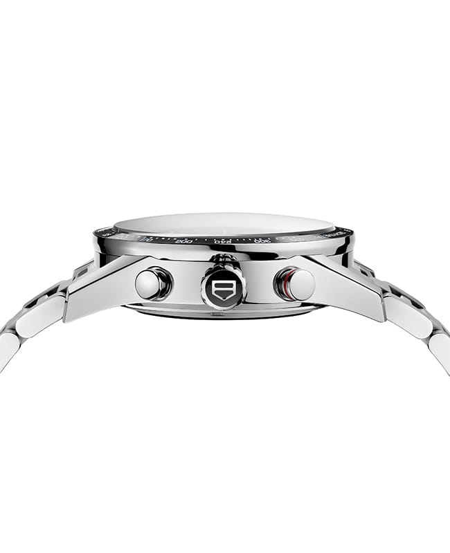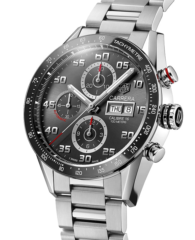 Стильный циферблат, заключенный в прочный корпус с неподвижным керамическим безелем с тахиметромТахиметрРазмеченная шкала, располагается на ободке или безеле часов. Тахиметр позволяет рассчитать скорость на определённом участке пути, расстояние измеряется в километрах или милях., подчеркивает его неподвластную времени элегантность. TAG Heuer Carrera CV2A1S.BA0799 с хронографомХронографФункция позволяет измерять отрезки времени с особой точностью: часы, минуты, секунды. Верным признаком хронографа является наличие на циферблате 3 дополнительных окошек-счётчиков., механизм - Calibre 16. Запас хода на 42 часа.. Сапфировое стеклоСапфировое стеклоПрочный и надёжный материал из кристалла сапфира синтетического происхождения, характеризующийся особой твёрдостью и устойчивостью к царапинам и повреждениям. устойчивое к появлению царапин, обладающее высокой прозрачностью. Класс водозащиты: 100 метров, позволит плавать, нырять и заниматься другими водными видами спорта. Корпус часов изготовлен из стали. Стрелки с покрытием Super-LumiNova позволяют легко считывать время при любых обстоятельствах. Отображение даты.